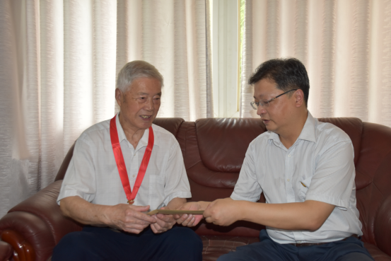 本网讯(记者 双全)6月29日下午,校党委书记万国光、副校长马凌军前往朱厚雄、黄偃武、姜明灿等老党员家中,为他们颁发“光荣在党50年”纪念章,并向他们致以节日的问候。