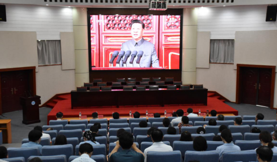本网讯(记者 双全)7月1日上午8时,我校领导班子全体成员、全校党员干部分别在图书馆二楼会议室、建筑工程实训中心会议室、医学院会议室等处,集中收看庆祝建党一百周年大会直播盛况,认真聆听习近平总书记激动人心的重要讲话。