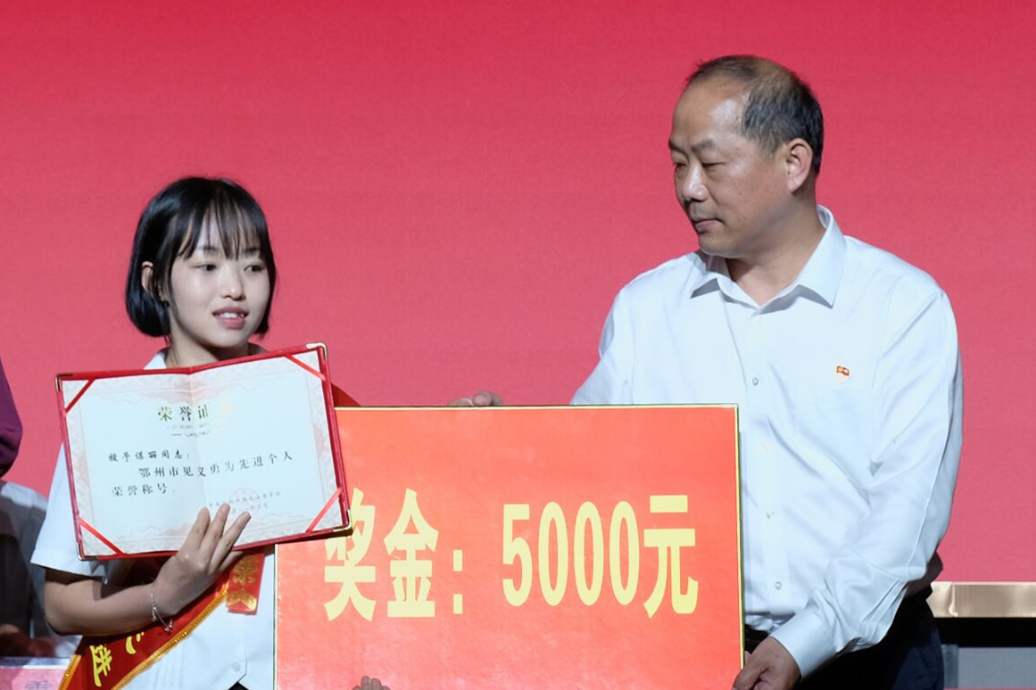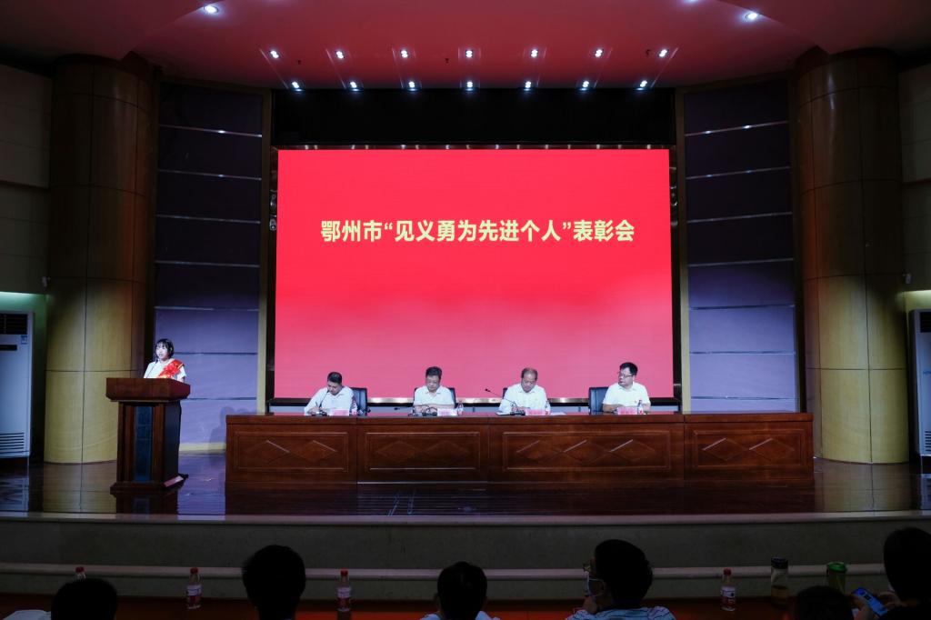 本网讯(记者何建华/文 黄磊/摄)7月1日下午,鄂州市“见义勇为先进个人”授奖仪式在鄂州职业大学举行。市委政法委为鄂州职业大学学生谌丽颁发鄂州市“见义勇为先进个人”证书和奖金,表彰其高铁抢救6个月卡喉婴儿的义举。校党委书记万国光、市委政法委常务副书记熊新阳出席授奖仪式并讲话。