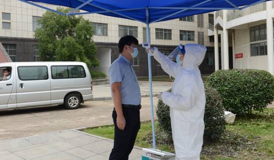 “你最近是否到过中高风险地区?从什么时候开始有发热现象?”在学生发热应急预案演练中,辅导员发现一名学生有发热现象,上报至学院书记,书记核实情况后立即上报学校疫情防控领导小组的同时,将该学生带到临时隔离点。医护人员对该学生进行体温检测和问询,并对接触人员开展详细排查。与此同时,学校安排车辆迅速到达临时隔离点,将学生转移至医院就诊。最后,再对教室、走廊及相关区域进行全面消毒。