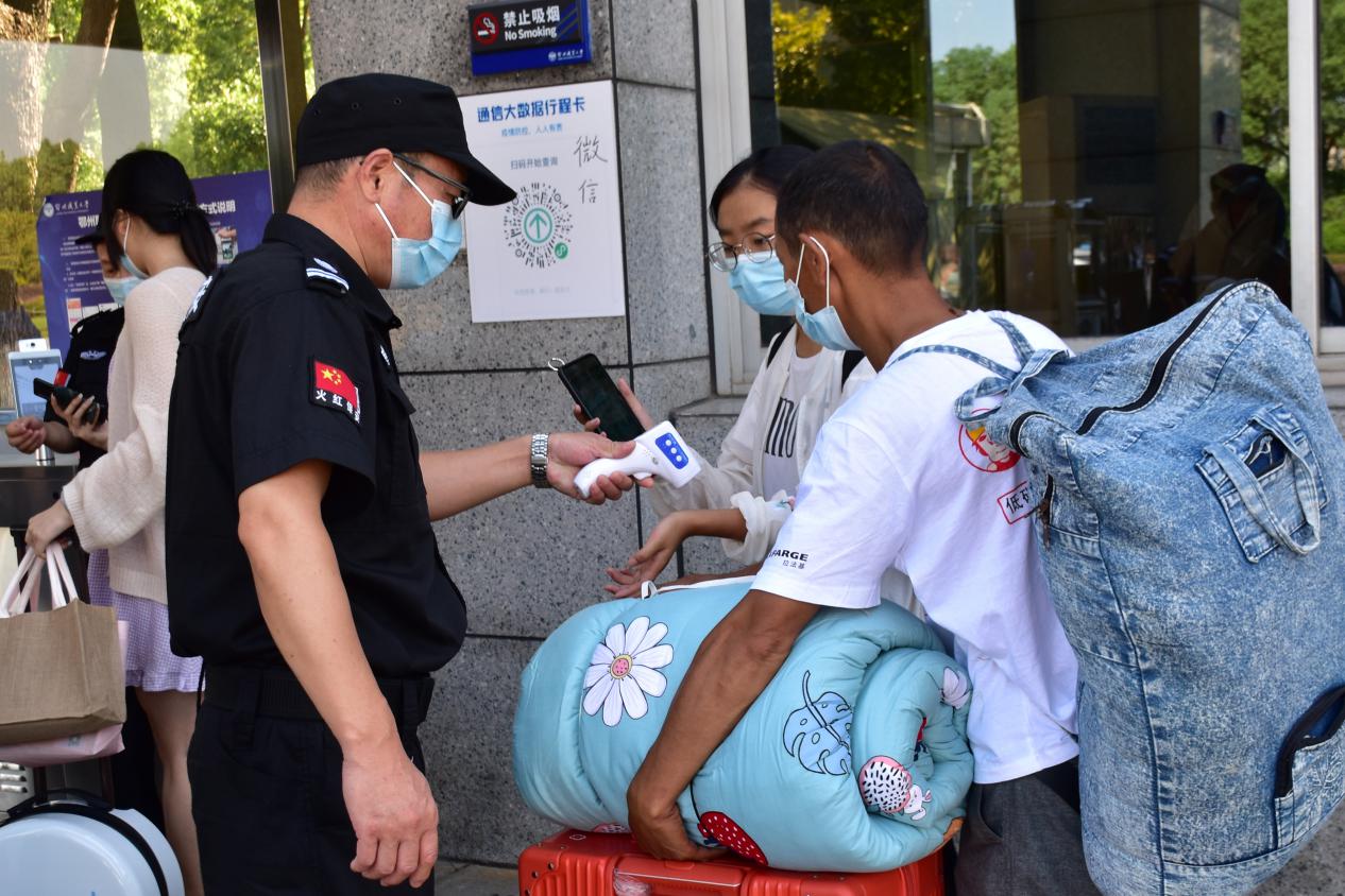 按照防疫要求,新生和家长在进行测温和查验健康码、行程码以及48小时之内有效核酸检测报告后进入校园。等待在校门口的志愿者们微笑着迎了上去,接过新生手中的行李,细心地引导他们办理报到手续,介绍校园环境、讲解答复新生和家长们的咨询问题。办完手续的新生还会领到由学校定制发放的防疫大礼包。最后,新生和家长们再乘坐校内摆渡大巴到达宿舍楼下。