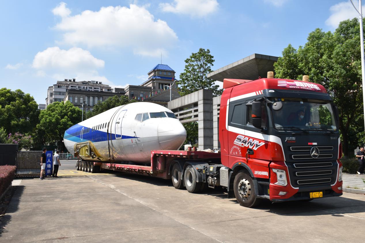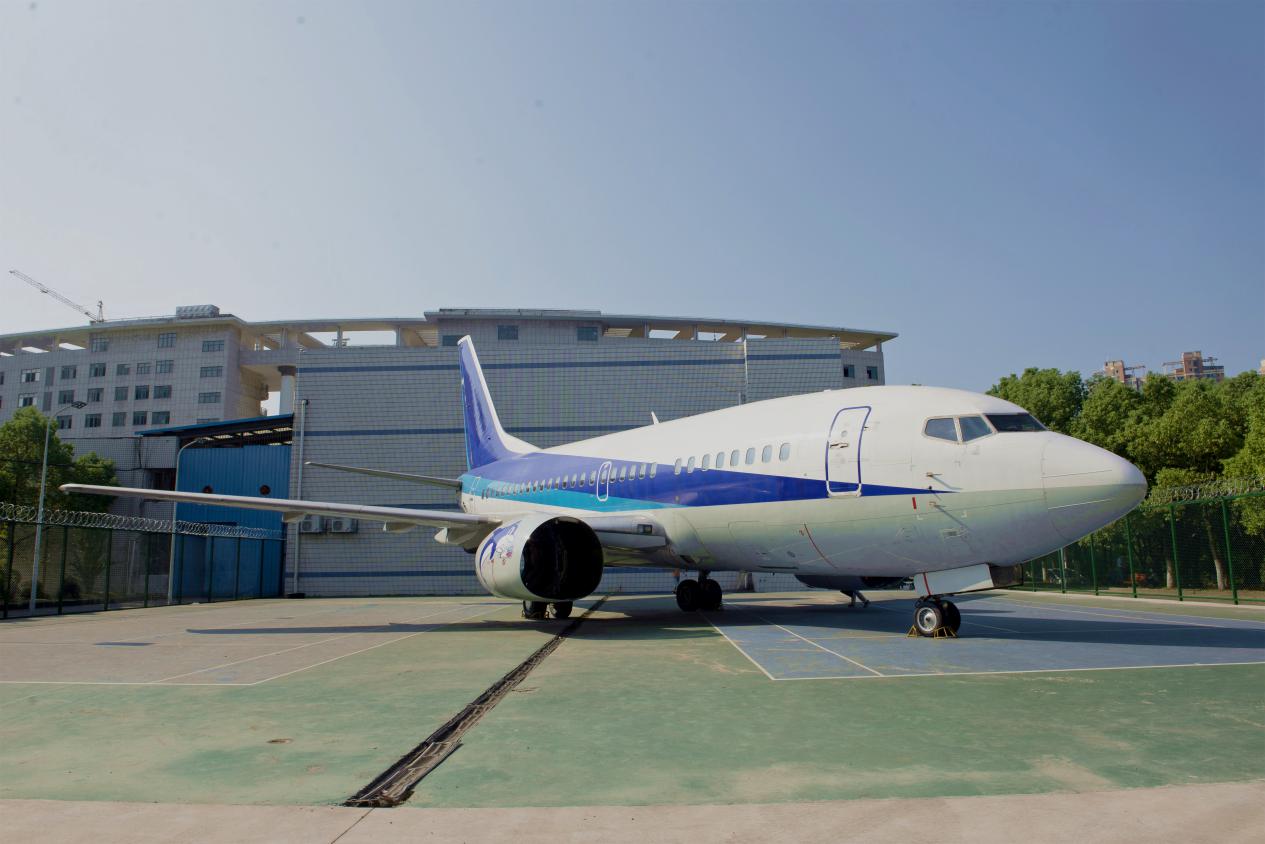 在今年暑假期间,一架蓝白相间的波音737-500大型飞机经过长途奔波,顺利进驻鄂州职业大学校园,成为了学校的一张新“名片”!