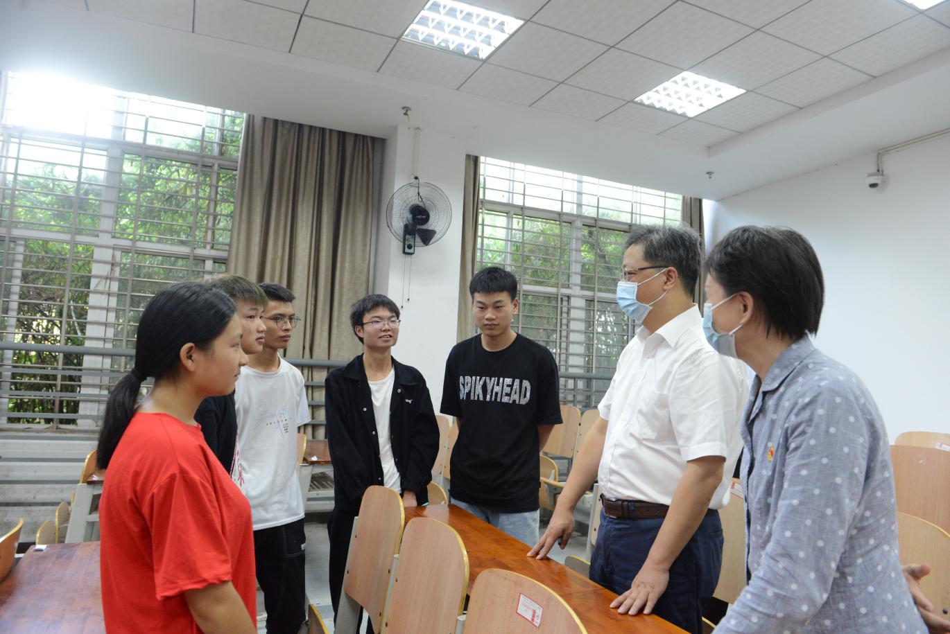 万国光还与各班学生干部亲切交谈,询问他们的听课感受,了解他们的学习情况,希望他们发挥带头作用,以身作则,为同学们树立榜样。