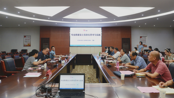 杨殿生介绍了学校的课程建设和专业建设情况。王冰向大家作了《专业群建设之信息化思考与实践》报告。
