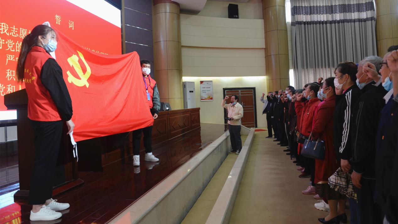 在鲜艳的党旗下,离退休党总支的老同志们重温了入党誓词,老党员们表示将不忘初心,保持本色,继续前行。