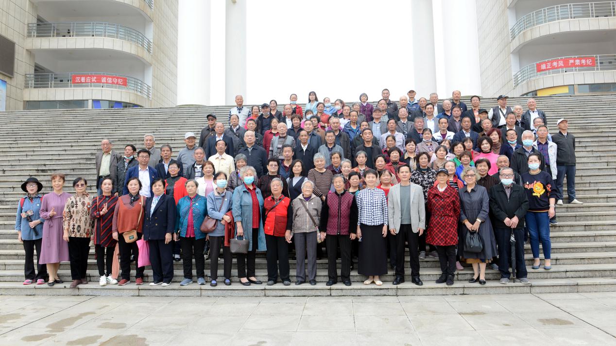 老同志们还饶有兴趣地参观了校园。许多老同志多年没有见面,见面后十分高兴,亲切地交谈,共忆当年在校工作和生活的往事。最后,老同志们在求真楼前合影留念。