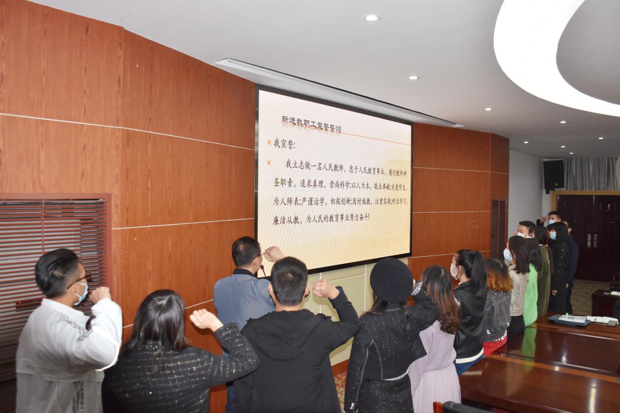 万国光勉励新入职的教职工,要提高政治站位,强化“为党育人,为国育才”使命;要突出师德师风第一标准,做一名“四有”好老师;要牢固树立“安心从教、热心从教”的理念,在教书育人中实现人生价值。