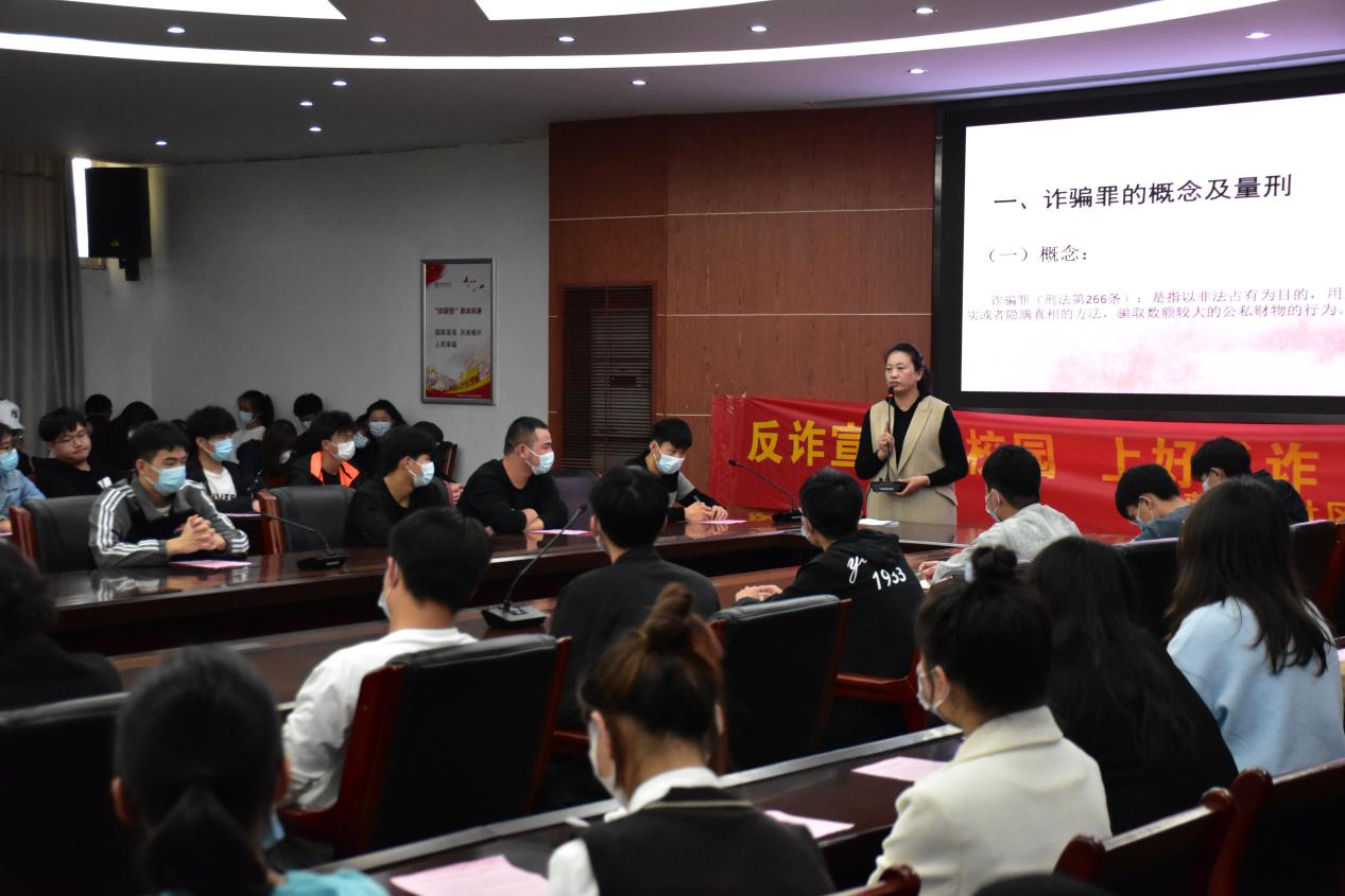 本网讯(学生记者 刘虹/文 文静/摄)“同学们,你们知道什么是电信诈骗吗?电信诈骗是通过短信、电话、网络电话、互联网等传播媒介实施犯罪的行为 ……” 10月28日下午,一场由市法律救援中心主办的防诈骗安全知识讲座在我校图书馆一楼会议室开讲。讲座由莲花山社区法律顾问张琳律师主讲,我校2021级的各班班长等共120余名学生代表聆听了此次讲座。