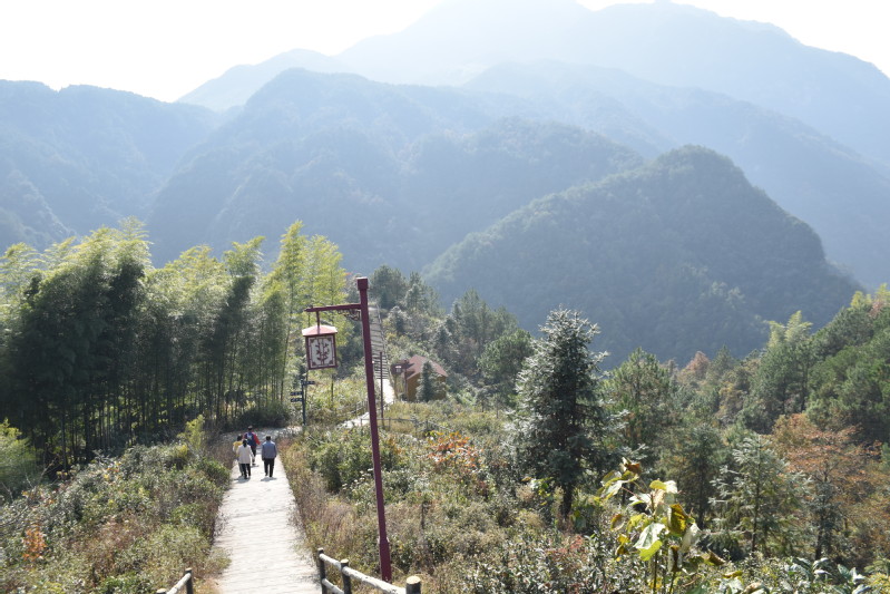 山道崎岖,环境清幽。周峰一行参观了棠树岭村的旅游栈道。大家行走其间,边走边看,那溪流、那瀑布、那婀娜多姿的竹林和远方的层峦叠嶂,不禁感叹于棠树岭村的旅游资源之丰富。