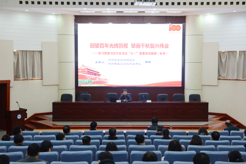 本网讯(记者 何建华) 11月24日下午,我校学习贯彻习近平总书记“七一”重要讲话精神宣讲报告会在图书馆二楼学术报告厅举行。市委宣讲团成员、校党委副书记周岫以“回望百年光辉历程,擘画千秋复兴伟业”为题作专题宣讲。