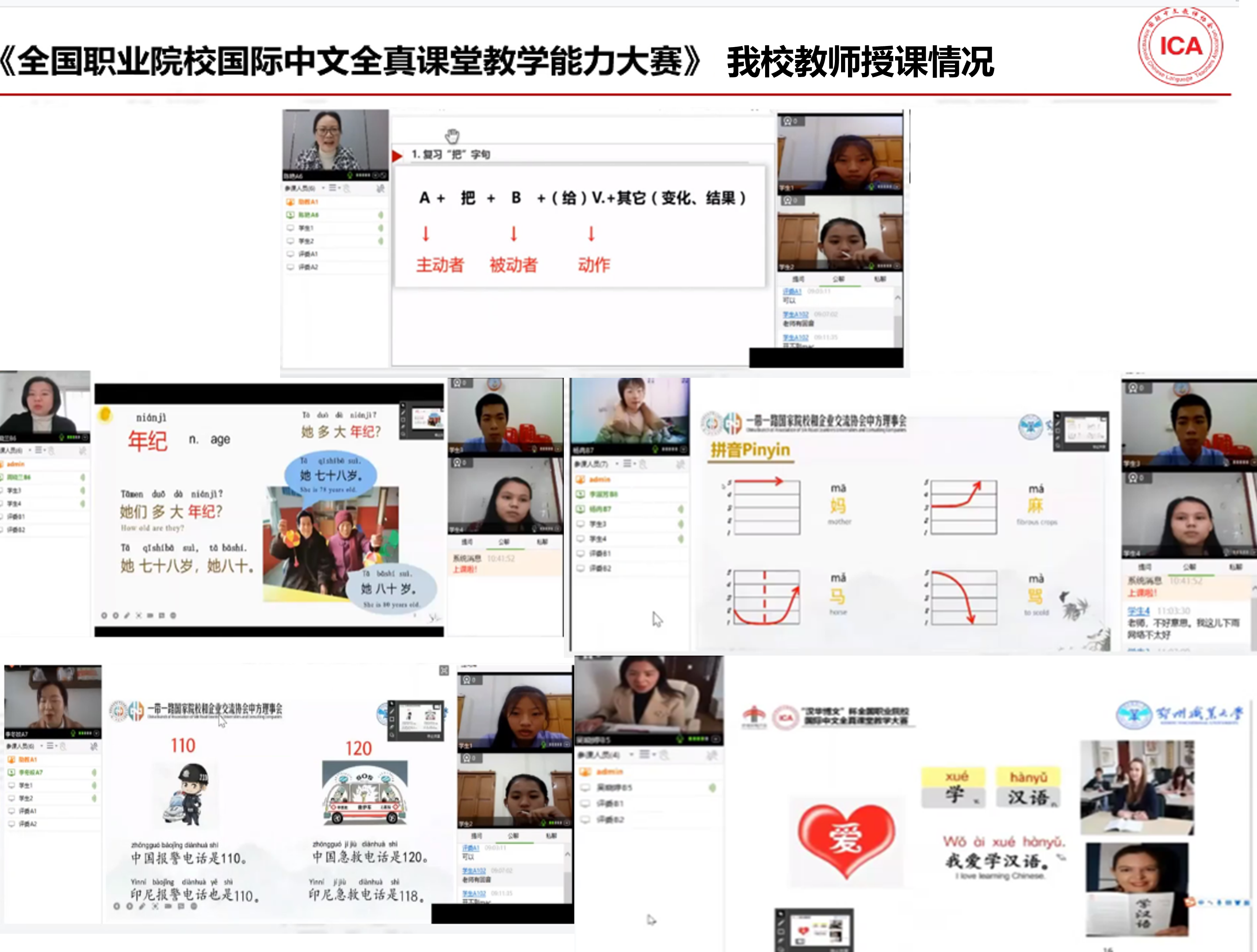 本次比赛由国际中文教师协会组织、职教联盟云学院、中国市场学会、汉华博文教育公司等合办,旨在推动中华优秀传统文化创造性转化、创新性发展,更好的服务各职业院校国际中文教学工作开展和海外分校中文+职教建设,提升师资队伍的专业能力。参赛对象面向国内职业学院招收来华留学生或准备招收来华留学生的在职国际中文教师。大赛历时2个月,经初赛、复赛,共有自来8所学校的教师参加角逐。