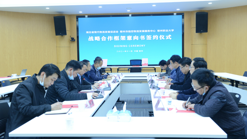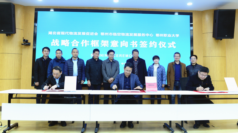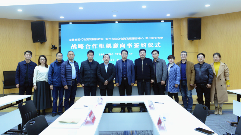 湖北省现代物流发展促进会、鄂州市临空物流发展服务中心及我校相关负责人出席签约仪式。