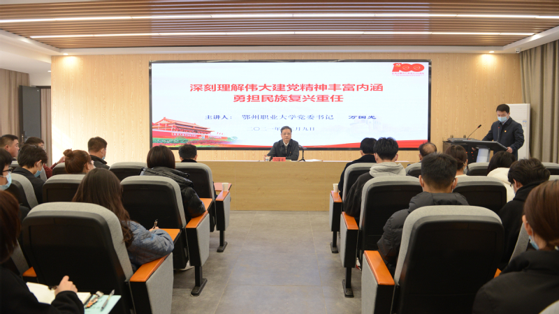 本网讯(记者 何建华)12月9日下午,校党委书记万国光向建筑工程学院学生党员和入党积极分子传达了鄂州市第八次党代会精神,并以“深刻理解伟大建党精神丰富内涵 勇担民族复兴重任”为题,结合自身学习思考感悟,为大家上了一堂生动、深刻、深情的思政课。