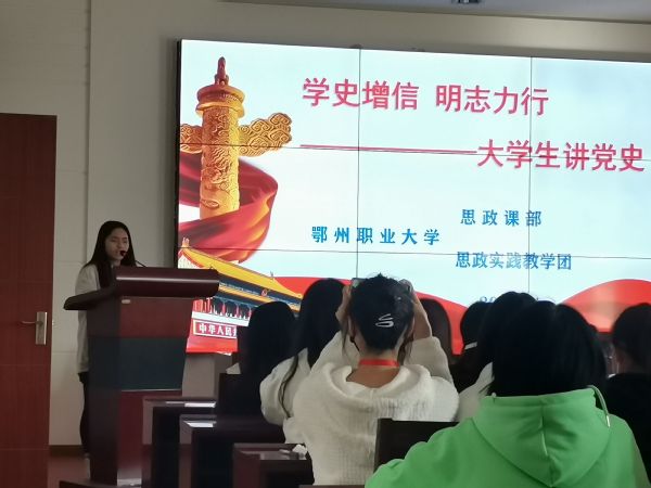 谭亚同学的《青年楷模——习近平青年时期的故事》,以习近平总书记15岁—22岁在陕北梁家河插队锻炼的故事为主线,讲述了总书记在梁家河克服“跳蚤关”“饮食关”“劳动关”“思想关”,和乡亲们“一块吃”“一块住”“一块干”“一块苦”发展生产,改变梁家河贫穷落后面貌的故事。同时,结合习近平总书记在桐山视察提出的关于新农村发展的重要指示,表达了新时代大学生要积极到农村、到基层锻炼自己,让自己在实践中锻炼成长成才的理想愿望,引起大家强烈共鸣。