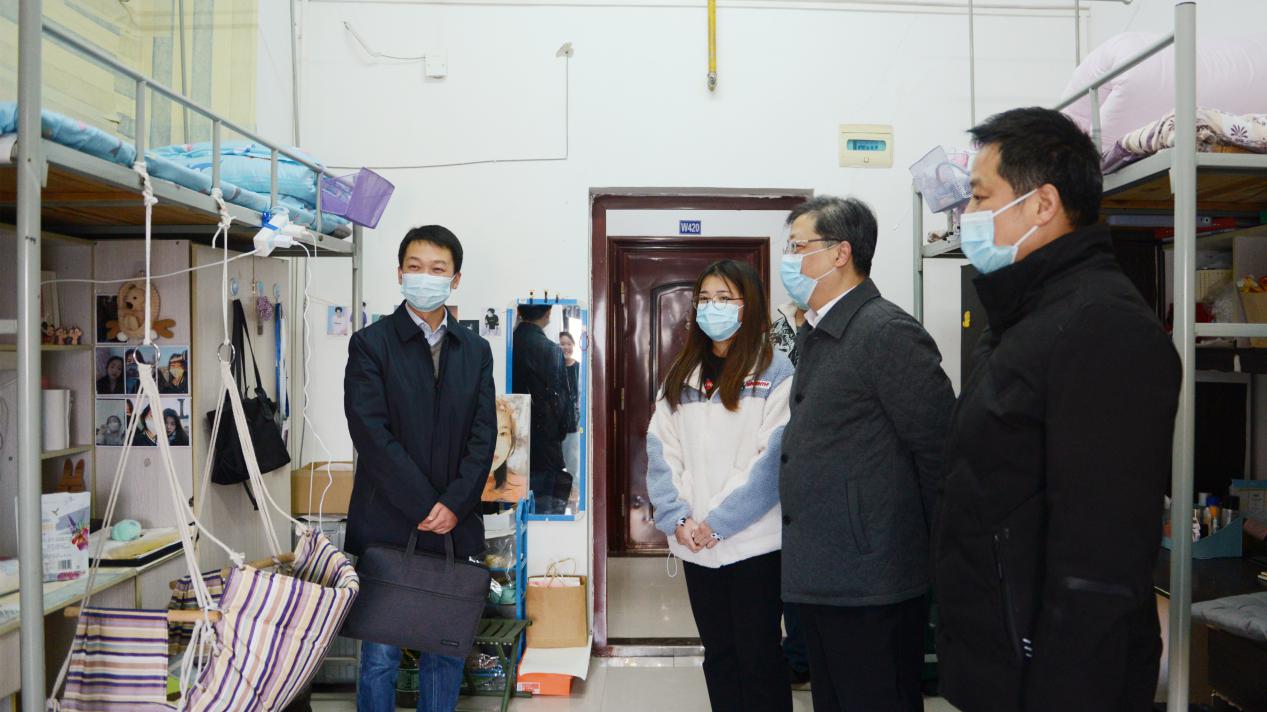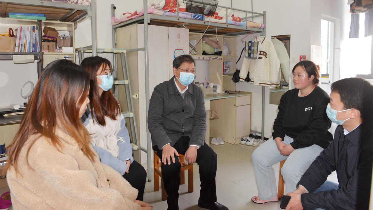 本网讯(记者 何建华)12月21日下午,校党委书记万国光前往东13栋学生宿舍看望慰问建筑工程学院2020级工程造价学生何亚丽同学。