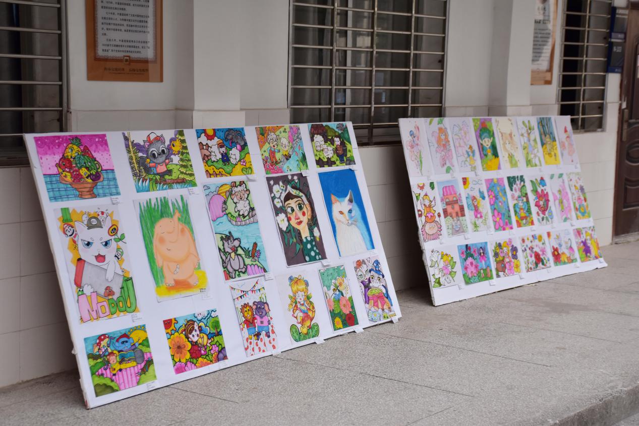 本次美术作品展由学前教育专业学生制作,现场共展出两百余幅作品,主要分为水彩画、简笔画和线描画,既有“鱼跃龙门”“亡羊补牢”“美人鱼”等寓言童话故事,也有充满艺术魅力的黑白装饰画,还有各种卡通动漫人物以及蔬果绘画。这些作品或构思巧妙,或立意深刻,或线条简洁流畅,充分展现了同学们扎实的专业素养,吸引了不少同学们驻足和赞赏。