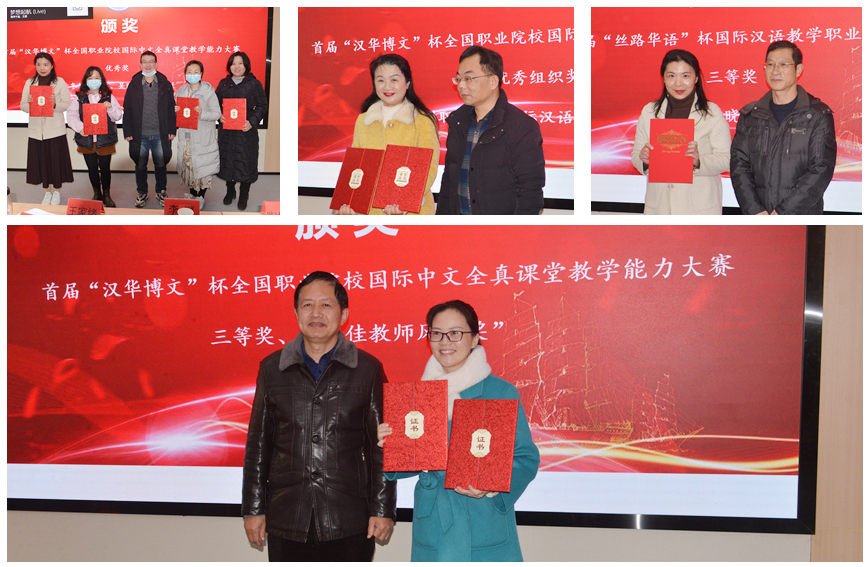 自2020年“一带一路”国家院校和企业交流协会中方理事会授牌我校为副理事长单位和首批国际汉语师资培训基地后,2021年,外事处进一步加强了国际汉语师资培训基地建设,培养了陈霜梅、周晓兰、陈艳、吴晓婷等一批具有国际汉语教师资格证的教师。在2021年11月首届“汉华博文”杯全国职业院校国际中文全真课堂教学大赛中,我校获得“优秀组织奖”,参赛教师陈艳获三等奖,周晓兰、杨冉、李冬姣、吴晓婷获优秀奖。在12月举行的第二届“丝路华语”世界国际汉语教学能力决赛中,参赛教师吴晓婷获得三等奖。