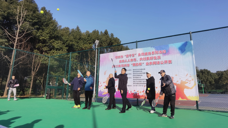 本网体育课部消息 12月18日,2021年鄂州市“网协杯”业余网球公开赛在我校网球场隆重开幕。校党委委员、副校长胡海平和市网球协会相关领导、嘉宾出席开幕式,并为比赛开球。