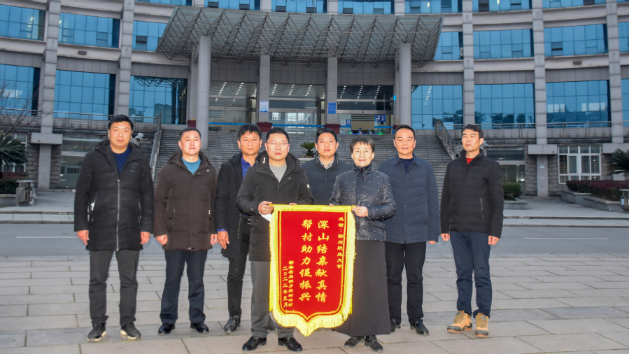 春节前夕,蕲春县向桥乡乡长丁威一行专程来到鄂州职业大学,代表蕲东的一个偏远山村——棠树岭村,送来一面绣有“深山结亲献真情,帮村助力促进振兴”的锦旗和一封情真意切的感谢信。