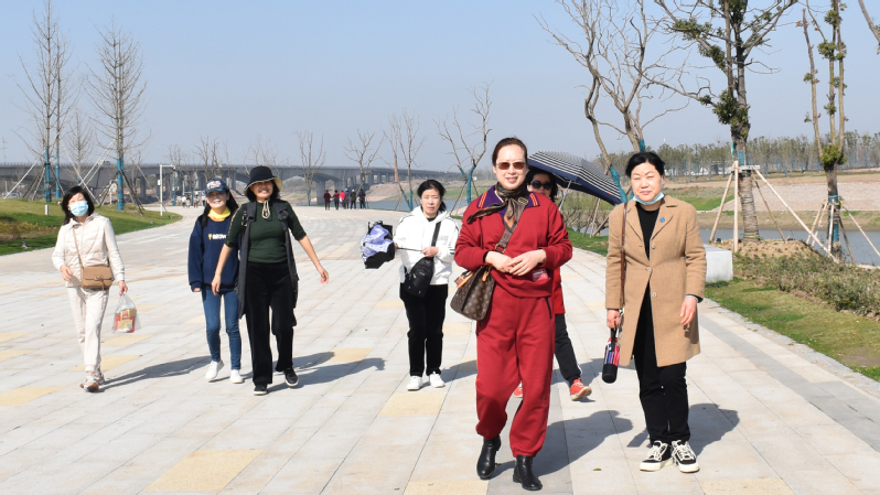 阳光下,江水泛碧,芳草如茵,花香沁人,漫步其中让人不觉沉醉。大家呼吸着清新的空气,吹着温暖的江风,每个人脸上都洋溢着轻松、舒心的笑容。一路上,大家谈笑风生,或欣赏沿途美景,或称赞沿江公园改造后的大变样,又或驻足拍拍美照,自信矫健的身姿成了江滩公园上的一道道靓丽的风景。