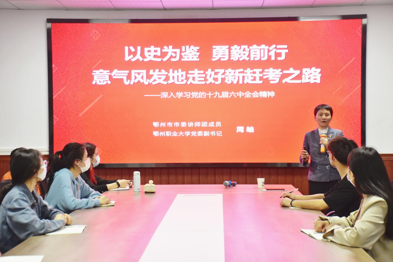 本网讯(通讯员 柯希茜/文 黄丽娇 雷玉芬 文贞杨/摄)3月15日晚7点,市委讲师团成员、校党委副书记周岫深入教育管理学院,开展了题为“以史为鉴勇毅前行,意气风发地走好赶考之路”党的十九届六中全会精神宣讲。