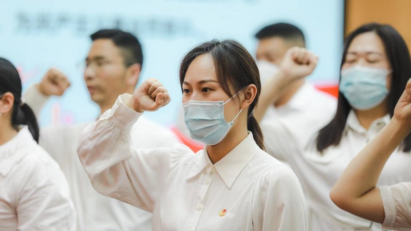 医学院青年团员表示,要用实际行动和优异成绩向党汇报,永远跟党走,奋进新征程,以优异的成绩迎接党的二十大胜利召开。