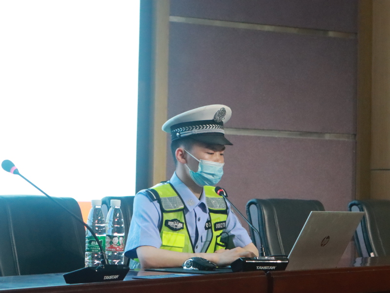 主讲人市交管局五大队的陈焱警官从道路交通安全形势、安全文明出行、非机动车五乱整治和案例分析几个方面详细讲解了交通安全相关知识。