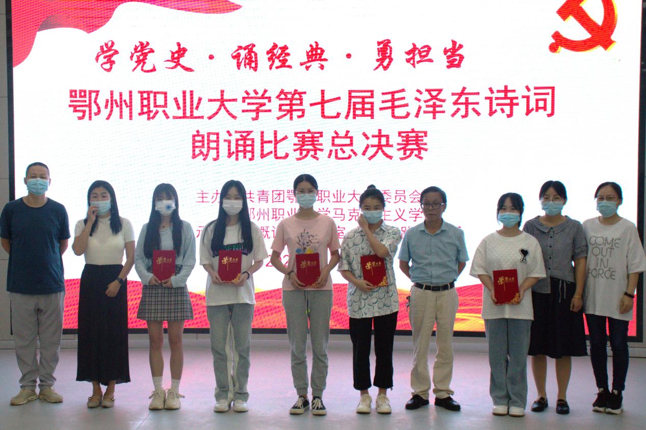 本网讯(通讯员 桂捷 苏羽琴 学生记者 蒋丽/文 郭城/摄)5月26日,由校团委、马克思主义学院主办的“学党史诵经典勇担当”第七届毛泽东诗词朗诵比赛总决赛在学院多功能厅圆满落幕。