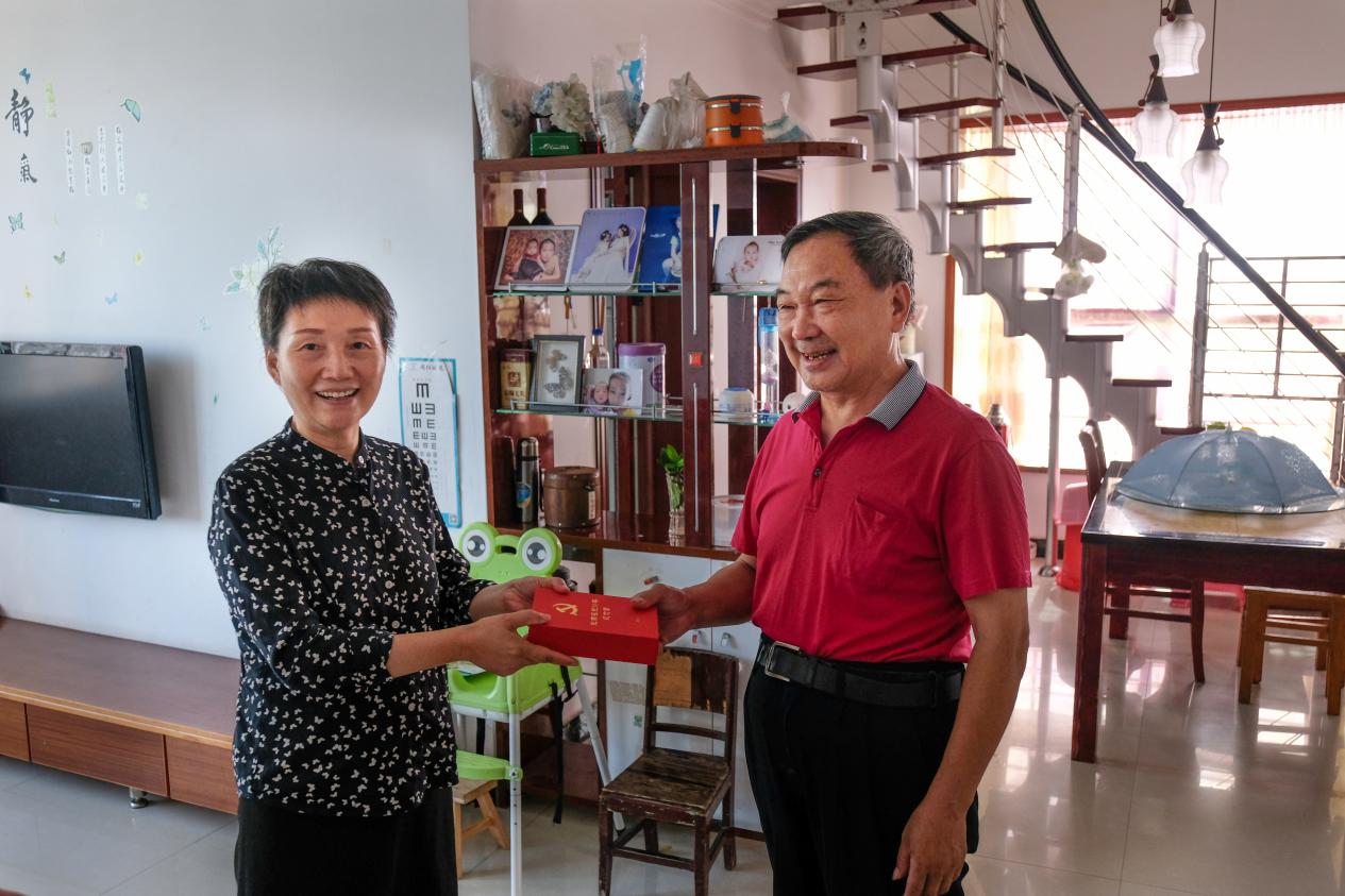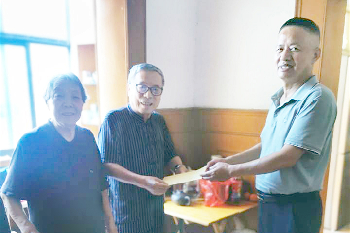 万国光走访慰问了杨植涛、郑振东等离休老干部、老党员,并驱车来到段店镇,亲手为退休老党员熊家金颁发“光荣在党50年”纪念章。