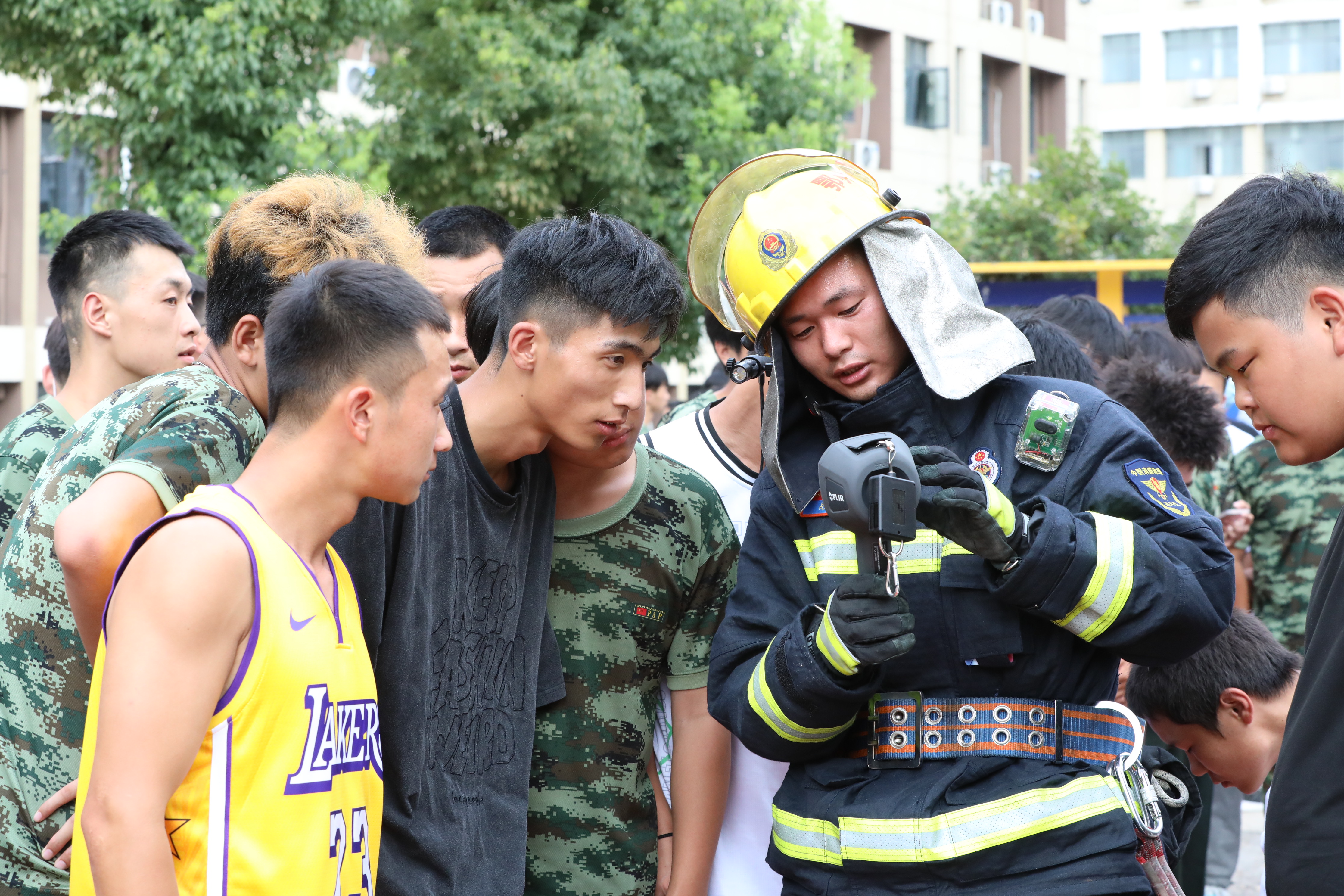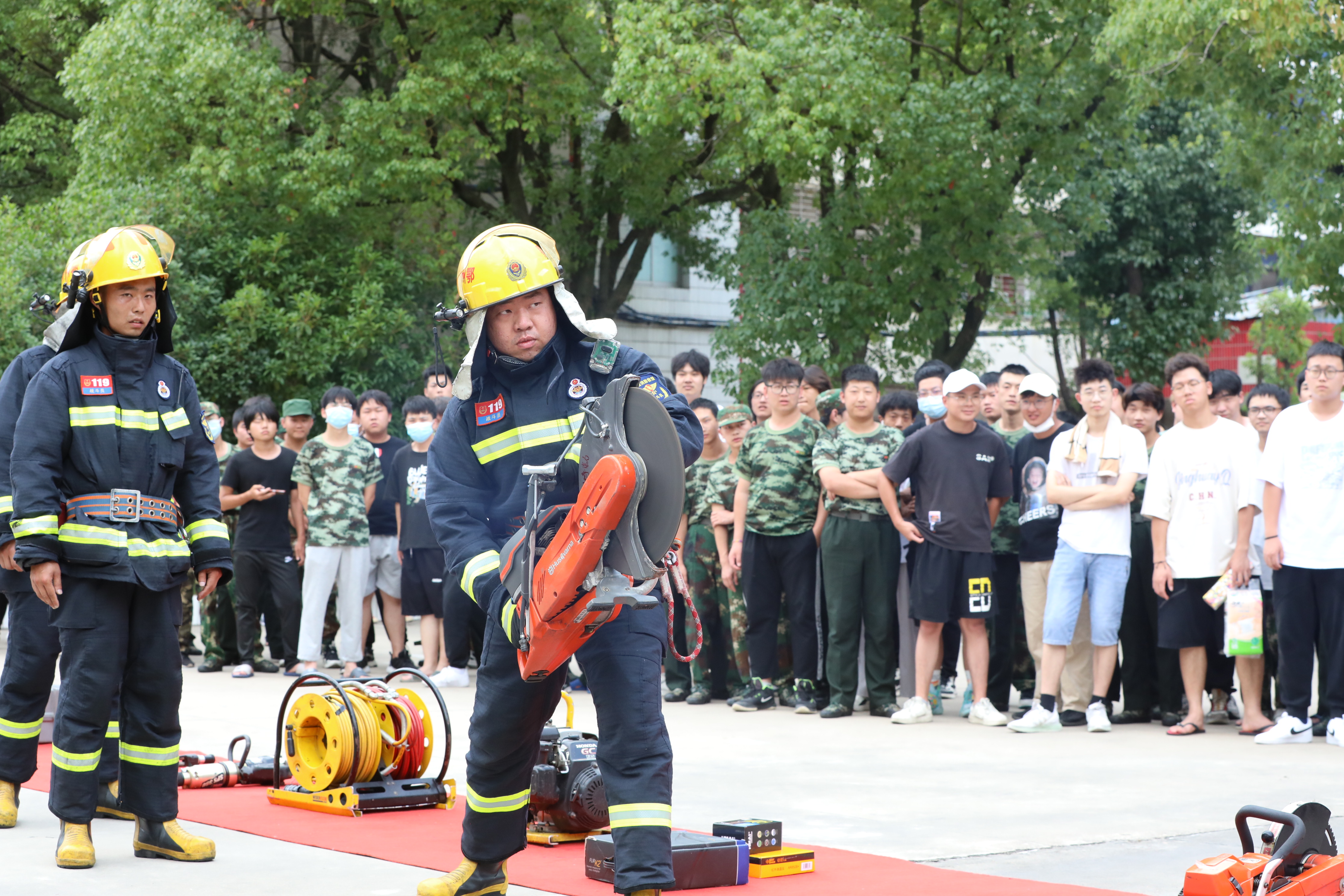 “演练中大家都表现都很好,没有发生人员‘伤亡’情况。”消防员在校园广场对此次演练活动进行了评价和总结,随后向学生展示消防器材装备,重点讲解如何预防火灾、如何正确使用灭火器扑灭初起火灾等知识,并带领学生开展灭火实操演练。