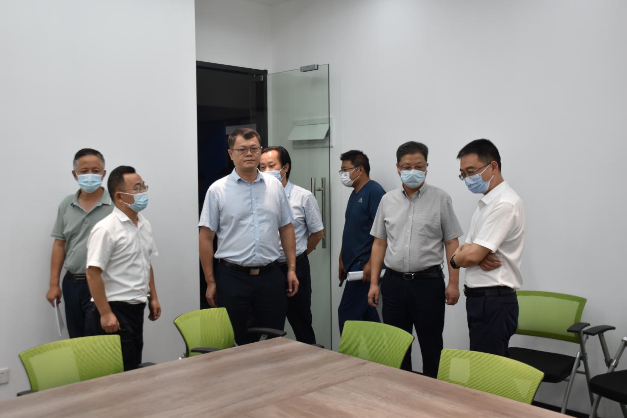 朱其敏一行在校党委书记万国光、校长何保华的陪同下,听取了双创中心的情况汇报,参观了双创中心的基础设施建设,仔细查看了各功能区和办公环境的布局情况。