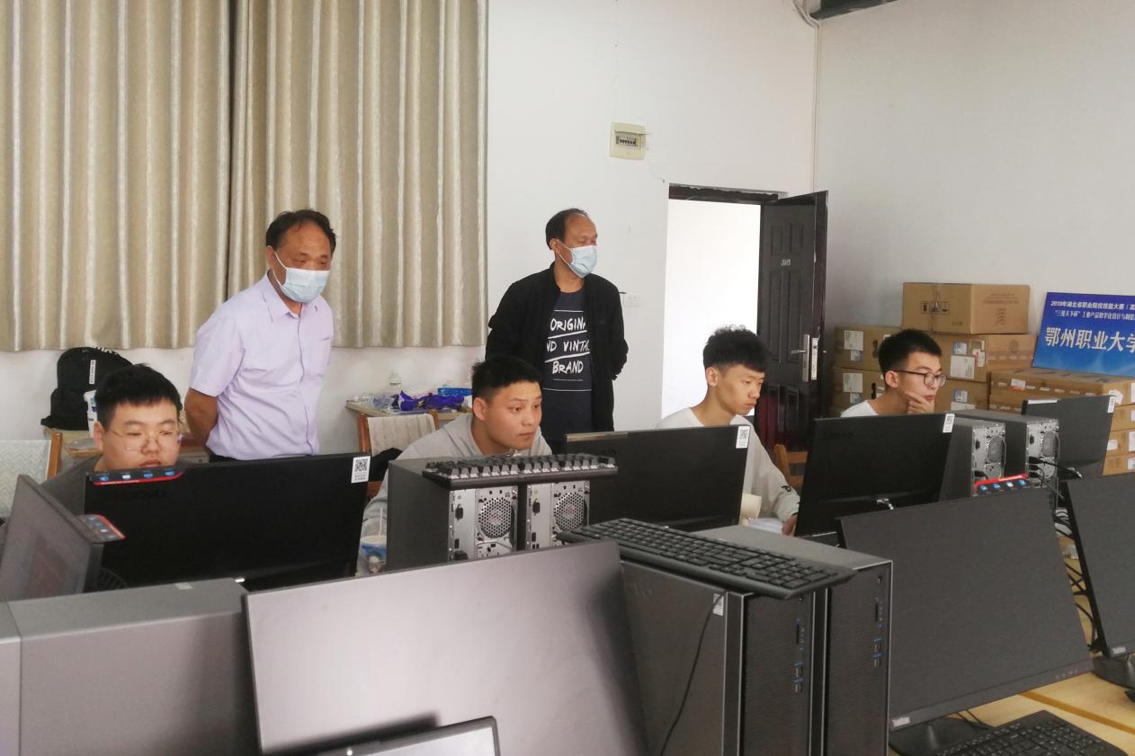 学校高度重视此次技能大赛,5月12日,党委书记万国光一行来到备赛教室,对备赛场地进行实地检查、指导,并和备赛学生亲切交流。