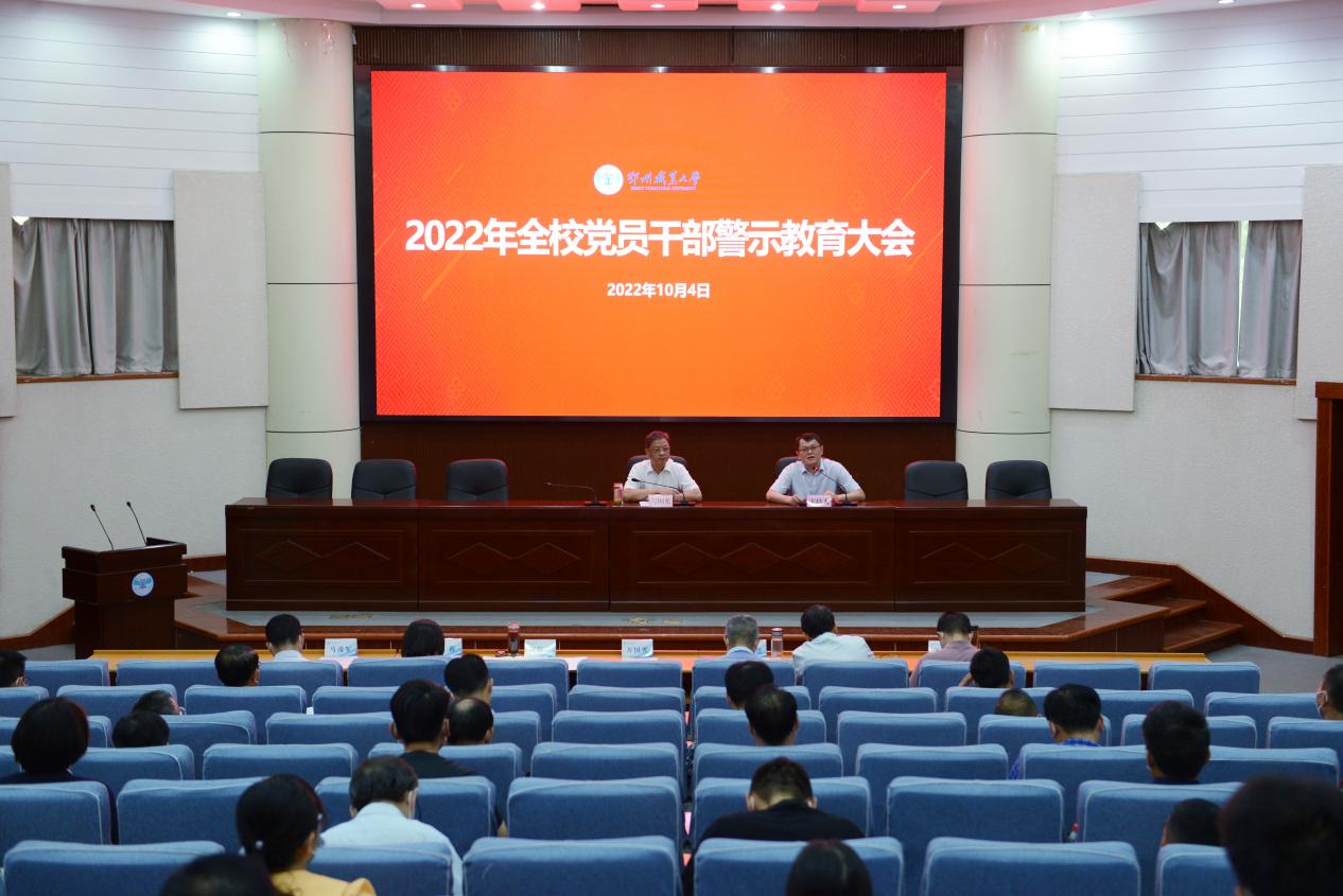 本网讯(记者 何建华)10月4日下午,我校召开全体党员干部警示教育大会,深入贯彻落实习近平总书记关于党的自我革命战略思想和全面从严治党重要论述,教育全校党员干部以案为鉴、警钟长鸣,着力营造风清气正、干事创业良好政治生态,为“双高”院校建设提供坚强保障,以实际行动迎接党的二十大胜利召开。