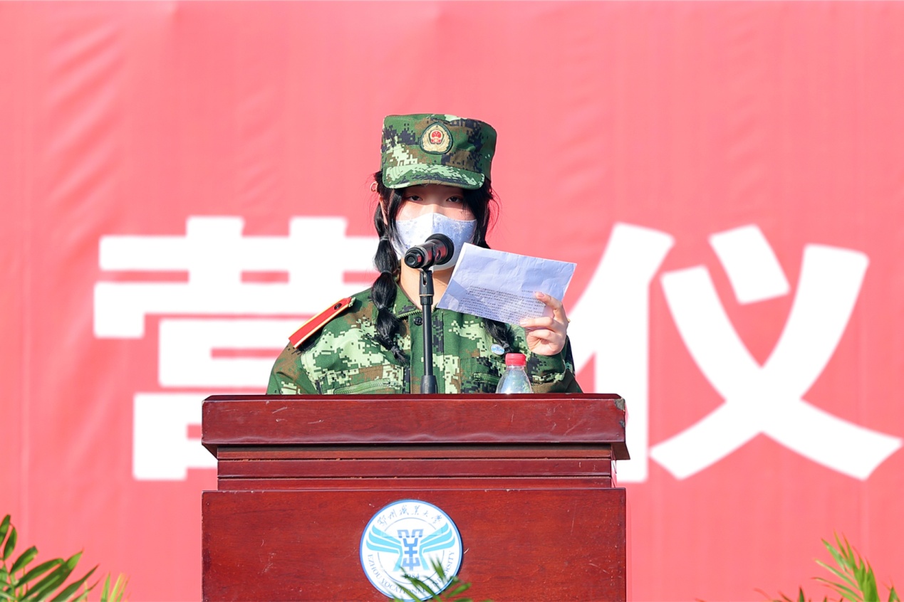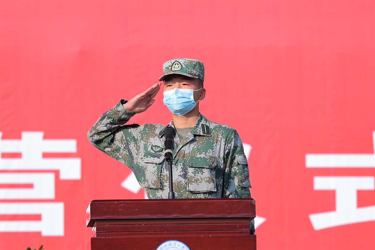 承训教官代表杨豪杰表示,军训是步入大学的第一堂课,军训很苦,但也很甜,希望同学们勇于接受考验,在军训中增强团队凝聚力,锻炼体魄,磨练意志,增强国防意识,厚植爱国情怀。