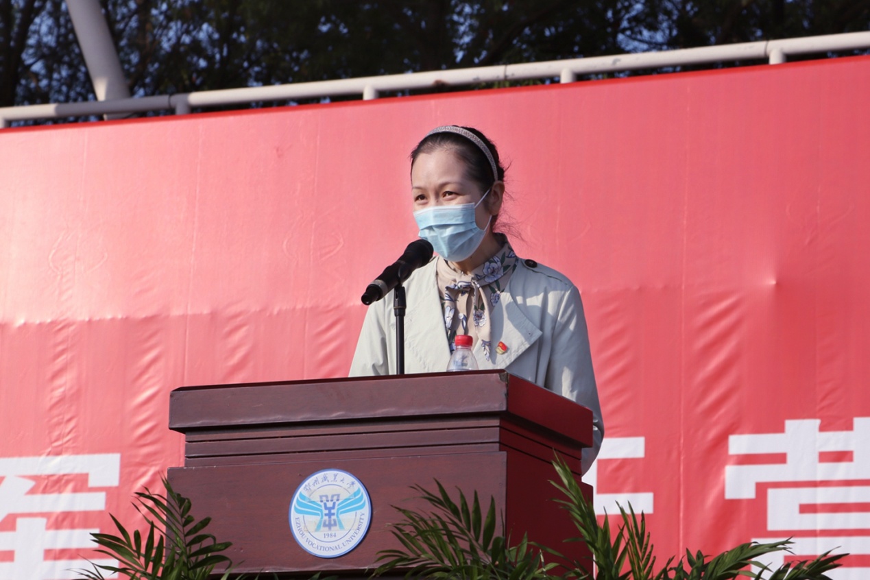 教师代表曾丽娟表示,人因追求梦想而伟大,大学因帮助人追求梦想而神圣。希望同学们厚植家国情怀,涵育道德品格;秉持“厚德自胜,乐学道成”的校训,练就健康身心,用心体会美好的大学生活,努力成长为具有“家国情怀、驰望自信、厚基践行、精技创新”的高素质劳动者和技术技能人才。