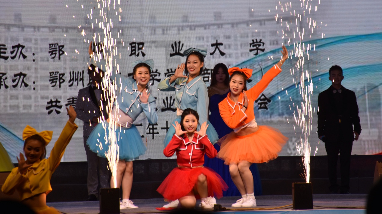 现场同学们也纷纷举起手中的手机灯与舞台互动,将整场晚会的气氛推向高潮。最后,晚会在情境舞蹈《奋进中的鄂州职业大学》中精彩落幕。