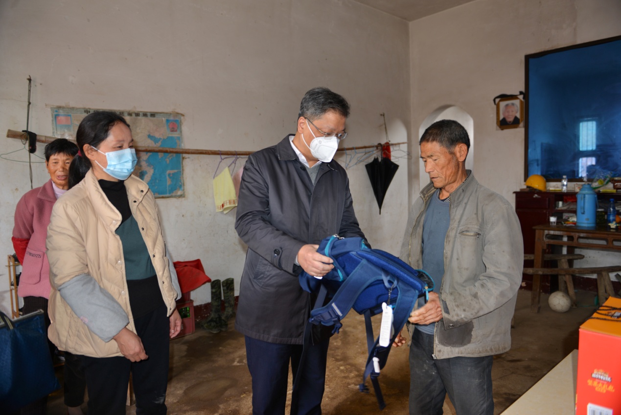 随后,校领导一行驱车前往农科村,逐户走访看望慰问困难群众,亲切地与他们拉家常,了解他们的身体状况和家庭经济状况、子女上学等情况,嘱咐其要保重身体,并送上慰问品和节日祝福。