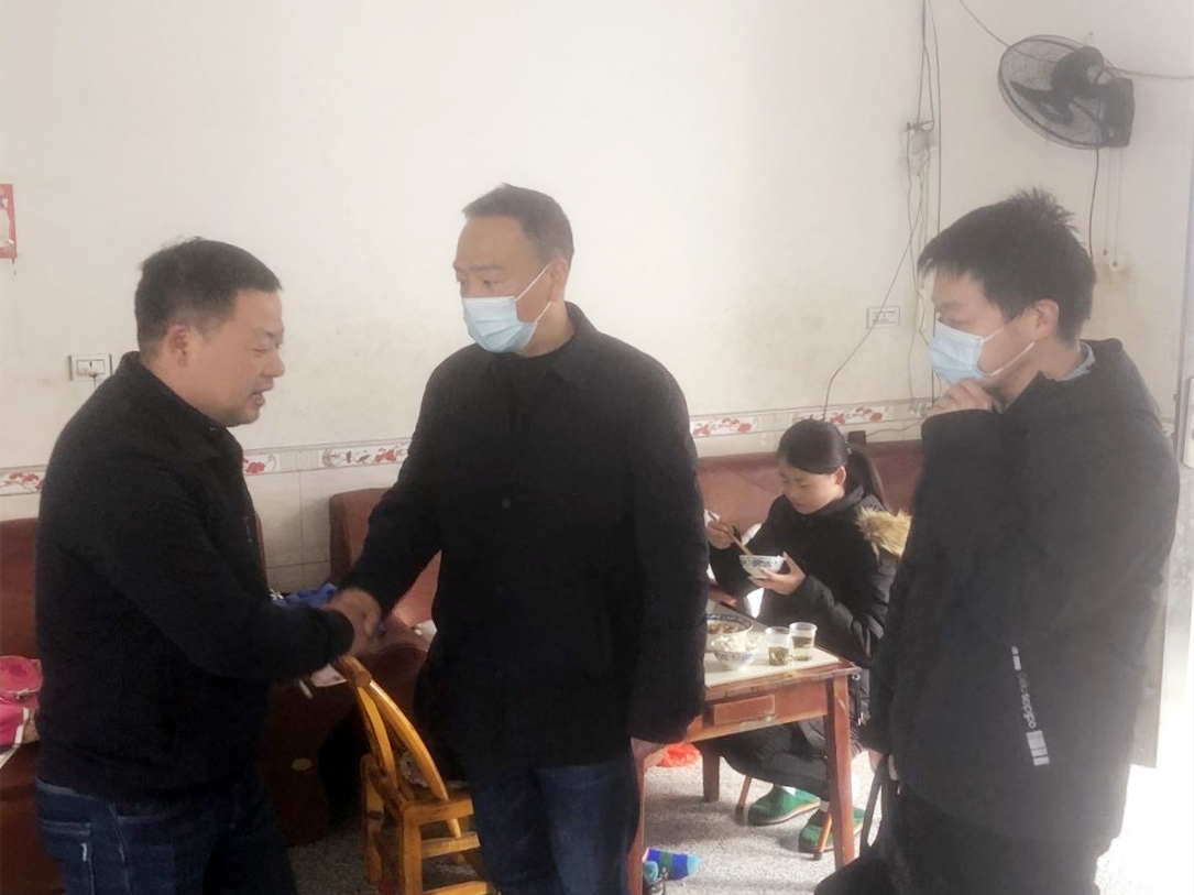 本网讯(通讯员 艾涛)1月13日,我校驻蕲春县向桥乡棠树岭村工作队和村委会一行人在队长叶宏的带领下,来到福利院和困难群众家中,为他们送去慰问金和米、油等慰问品,送去党和政府的温暖与关怀以及新春祝福。