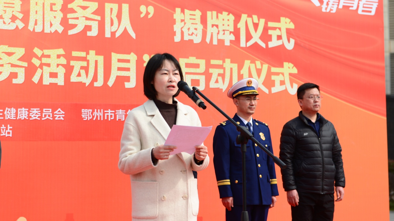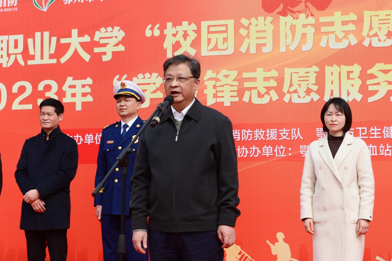 本网讯(记者 何建华)三月伊始,春回大地。3月3日上午,在第60个学雷锋纪念日到来之际,我校“校园消防志愿服务队”、“无偿献血志愿服务队”挂牌仪式暨2023年学雷锋志愿服务活动月启动仪式在求真广场举行。校党委书记万国光、团市委书记潘黎、市消防救援支队支队长刘俊、市卫健委党组成员高小威等出席启动仪式。