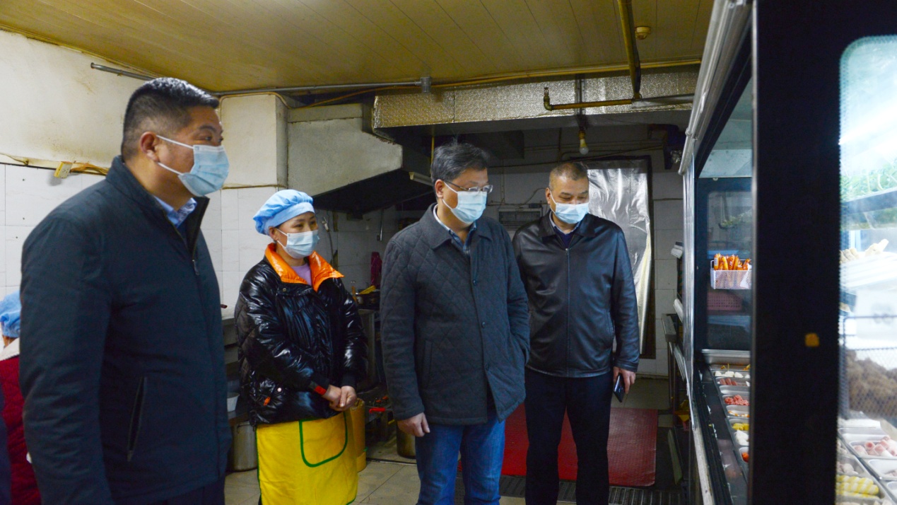 本网讯(记者 何建华)3月20日下午,校党委书记万国光、副校长王红山和鄂州市食品药品安全委员会的工作人员一起对学校餐厅开展食品卫生安全专项检查,全面排查食品安全风险隐患,保障广大师生用餐安全。