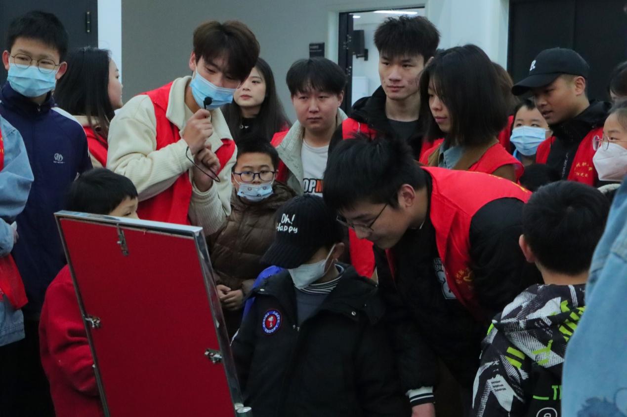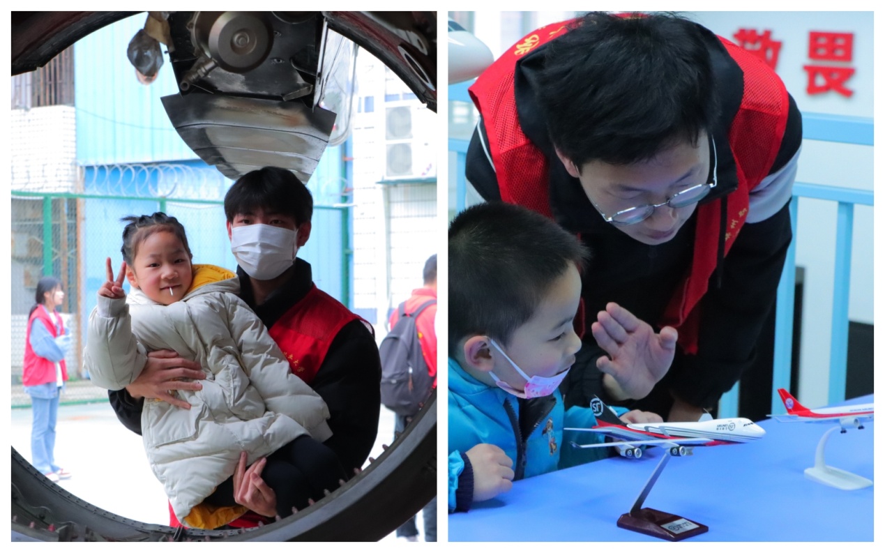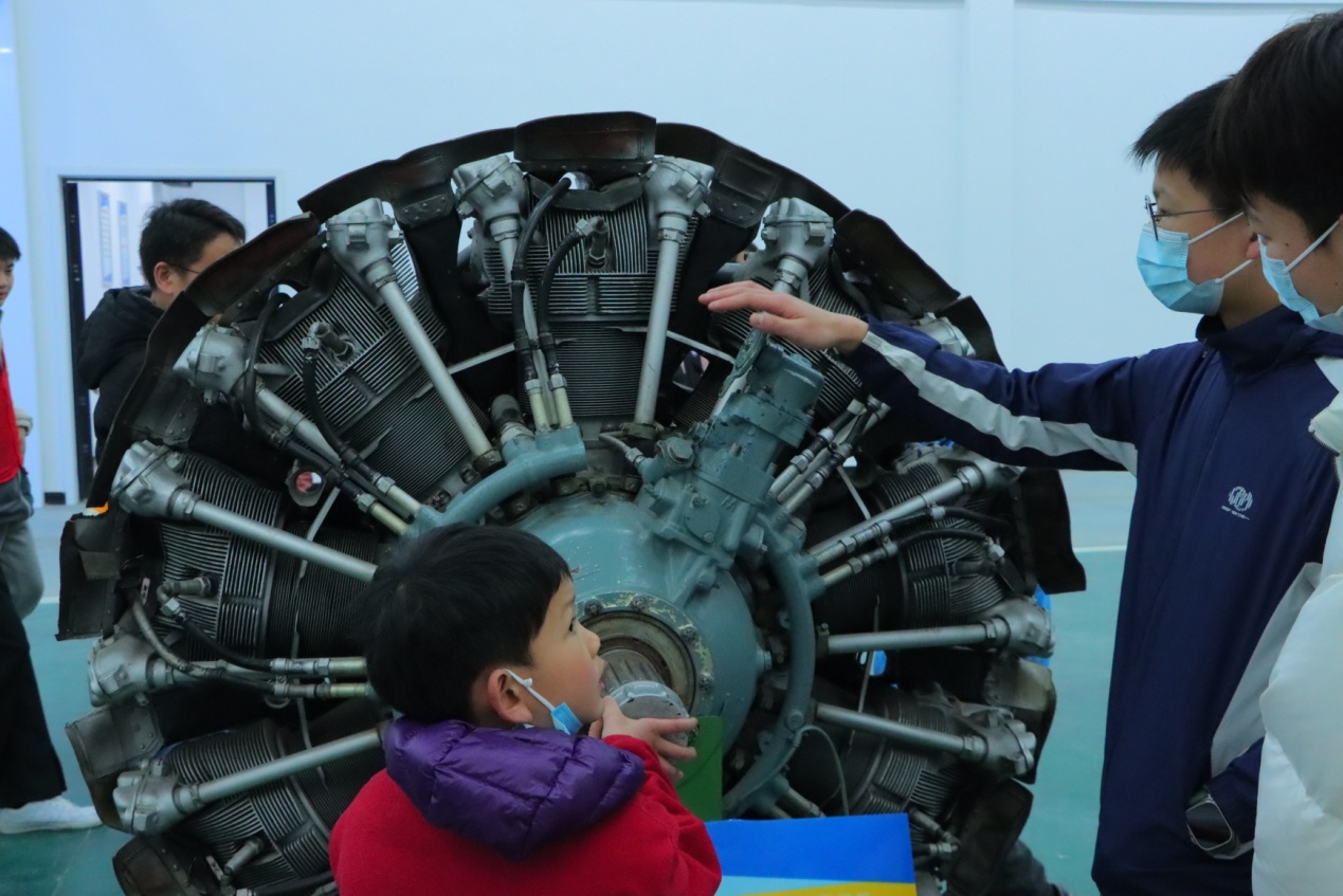 为了让小朋友们充分了解到航空知识,有更深刻的学习体验,学院安排了80名学生志愿者,一对一地提供讲解、陪同服务。小朋友和家长们在志愿者的引领下,参观了航空工程实训中心的各类航空发动机、民航安检设施等。一具具飞行器模型、一副副图片、一行行文字、一句句说明让小朋友们目不暇接、兴致高涨,流露出对航空事业的好奇与兴趣。