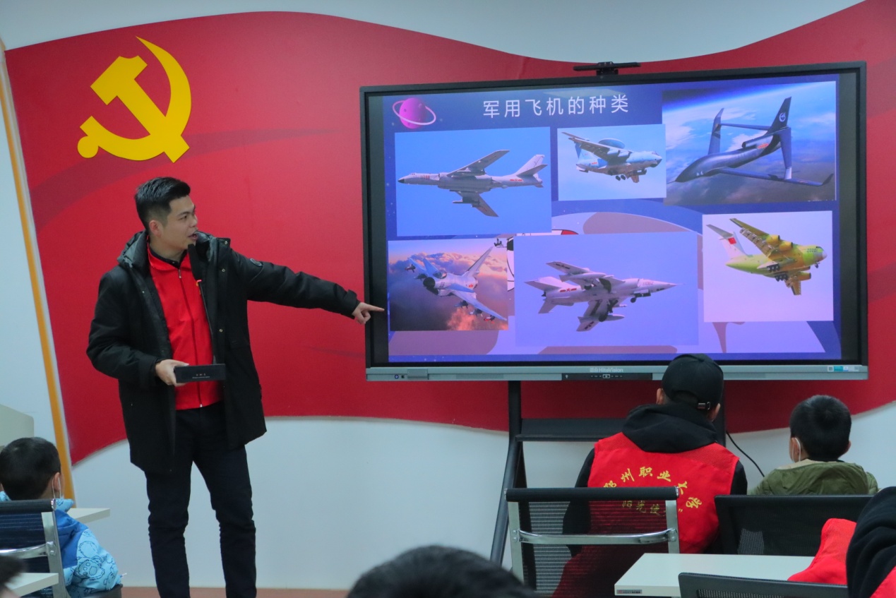 飞机的起源、飞机的发展历史、飞机分类……一系列生动的讲解深深吸引着小朋友们。大家踊跃举手发言,台上台下互动频繁。现场气氛活跃,笑声、掌声不断。