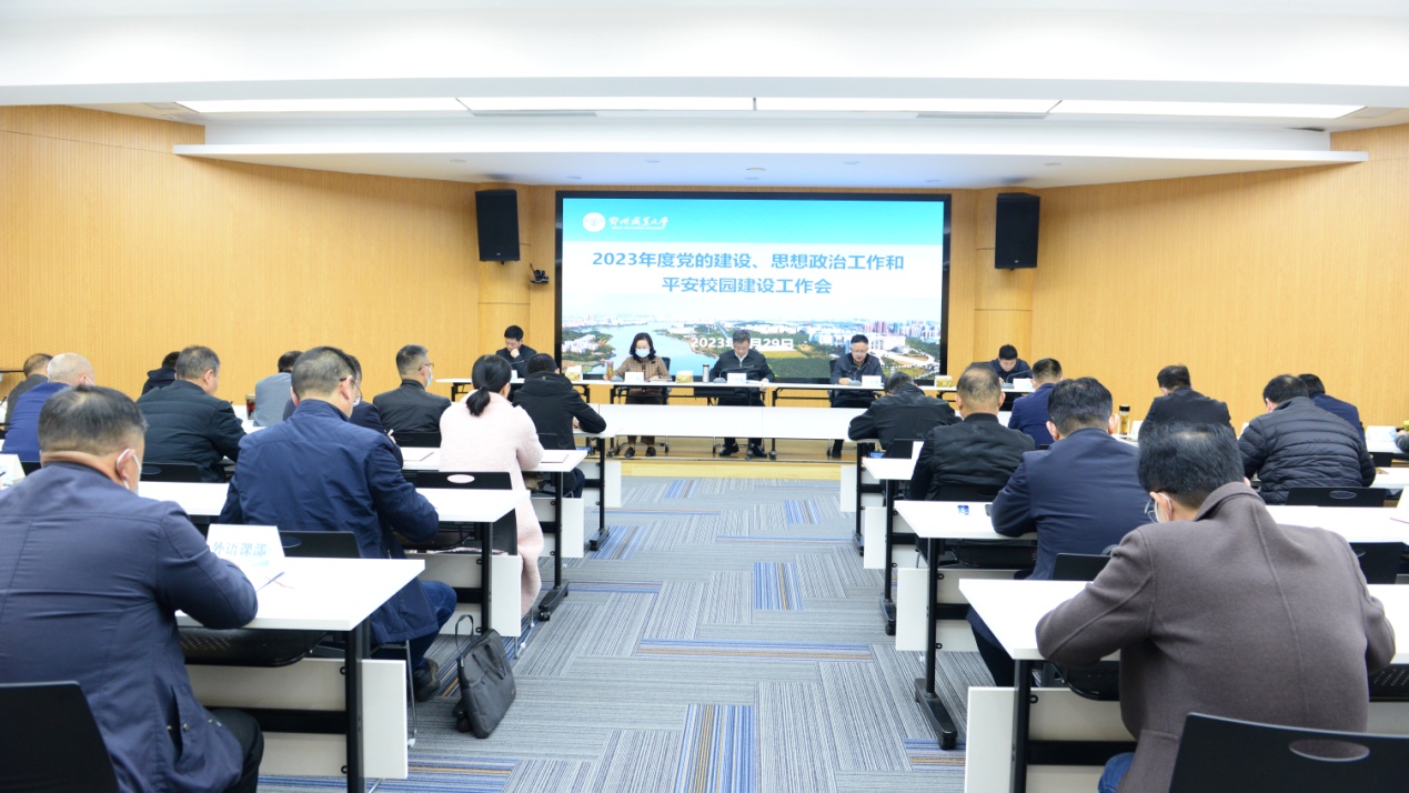 会上对2023年学校党的建设工作、学校思想政治工作、全校平安校园建设进行了安排部署。
