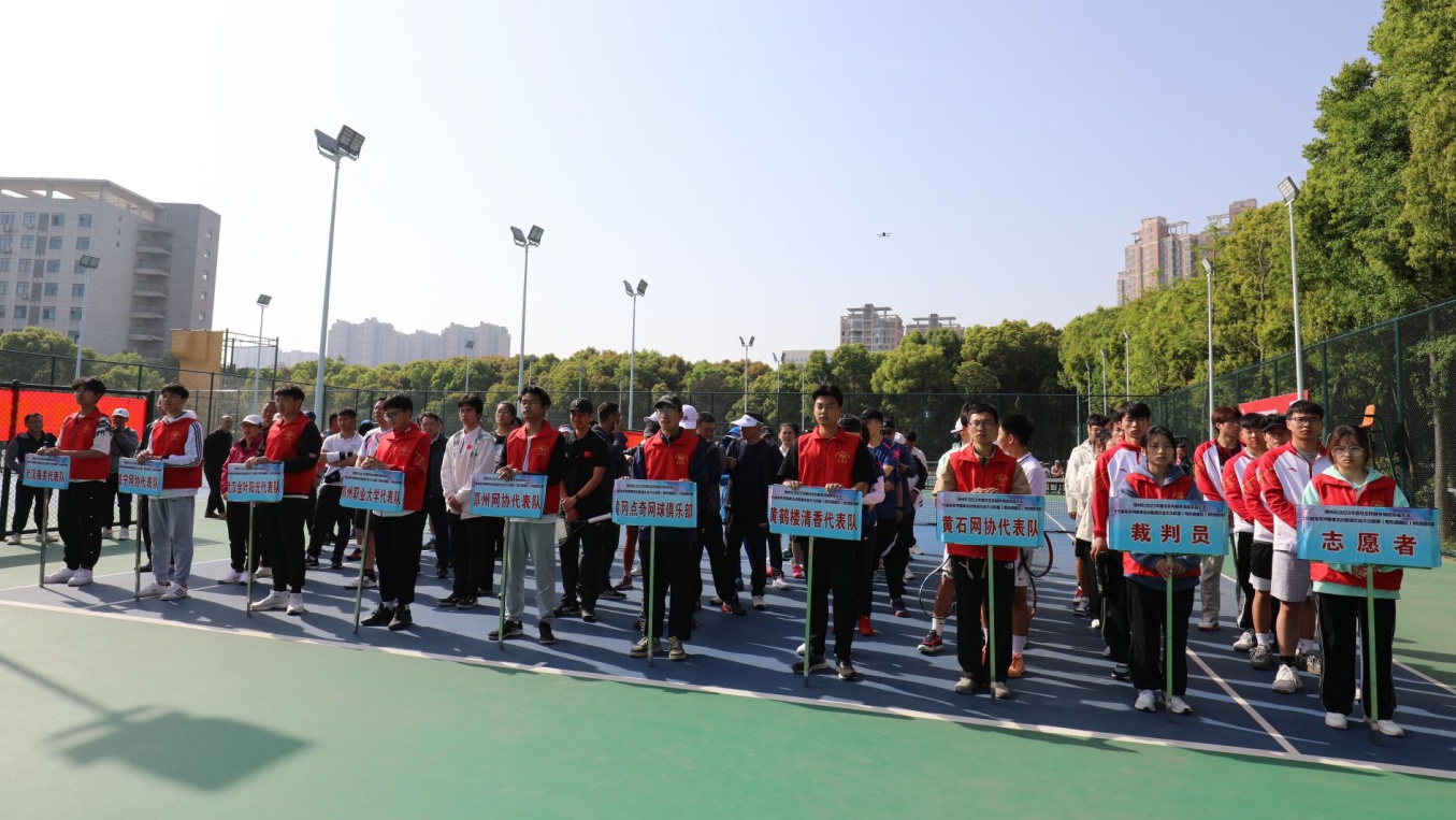 本网讯(通讯员 余昊)4月9日,湖北省大众联赛(鄂东南赛区)2023年网球团体比赛在我校网球场开赛。
