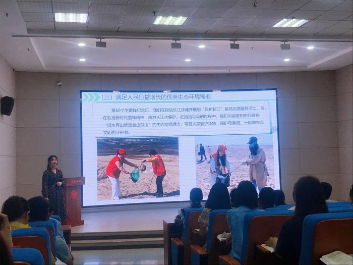 活动中,马克思主义学院青年教师向锦明为大家讲授了《生态文明建设》示范课。她从顺应人类文明进程、破解我国经济社会发展短板问题、满足人民日益增长的优美生态环境需要、应对全球生态环境领域挑战这四个维度系统阐述了为什么建设生态文明。