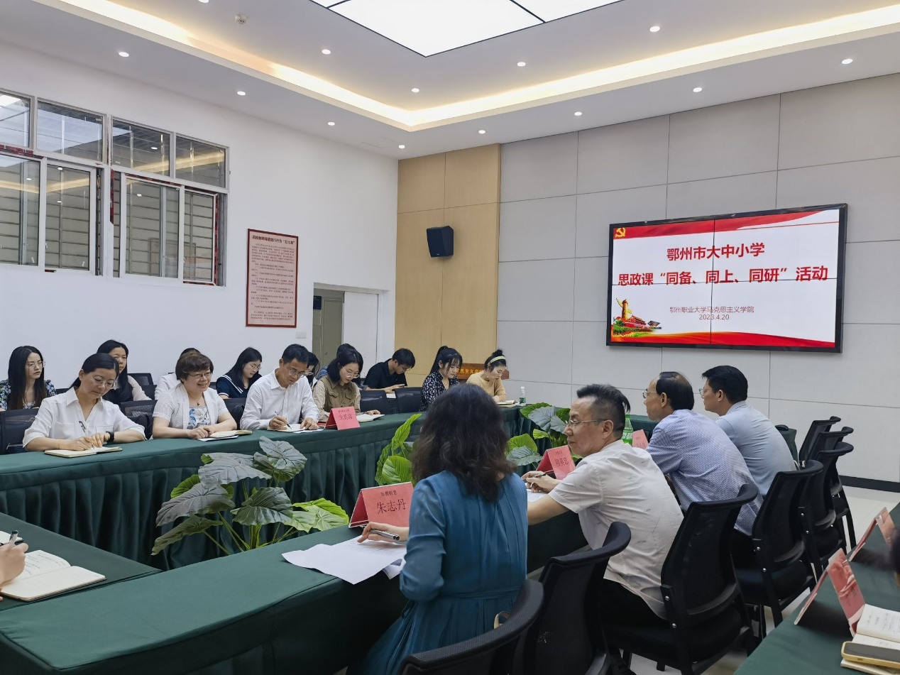 本网讯(通讯员 涂靓)4月20日,鄂州市大中小学思政课“同备、同上、同研”活动在鄂州职业大学马克思主义学院举行。市教育局相关领导、市属大中小学思政课教师代表、马克思主义学院全体思政课教师参加了本次活动。