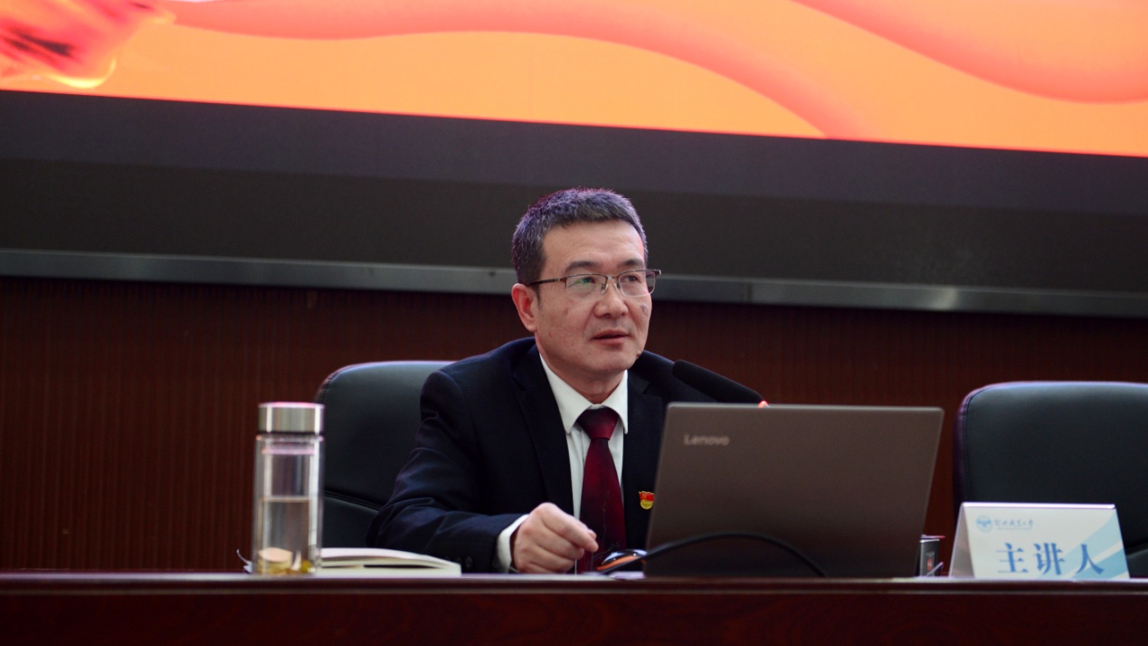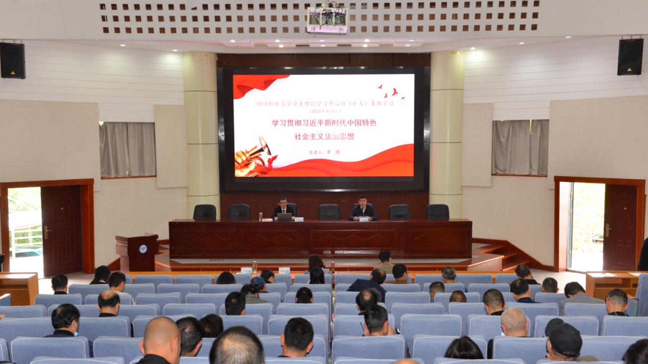本报讯(记者 何建华)4月27日下午,我校在图书馆学术报告厅举行党委理论学习中心组(扩大)学习会,集体学习贯彻习近平新时代中国特色社会主义法治思想、学习贯彻落实党的二十大报告关于教育的重要论述和《关于深化现代职业教育体系建设改革的意见》。李璐教授作专题讲座。全校科级及以上干部、教研室主任参加学习,会议由副校长王红山主持。