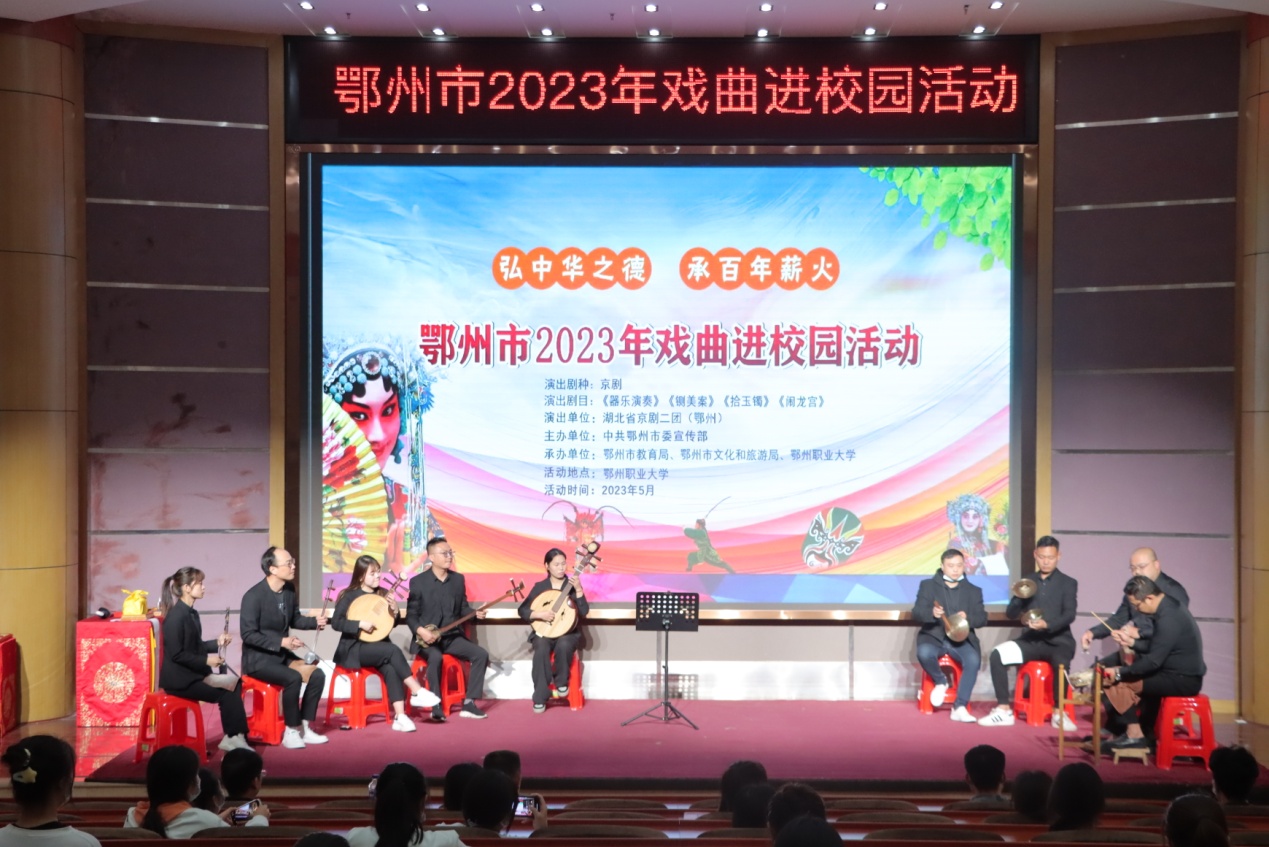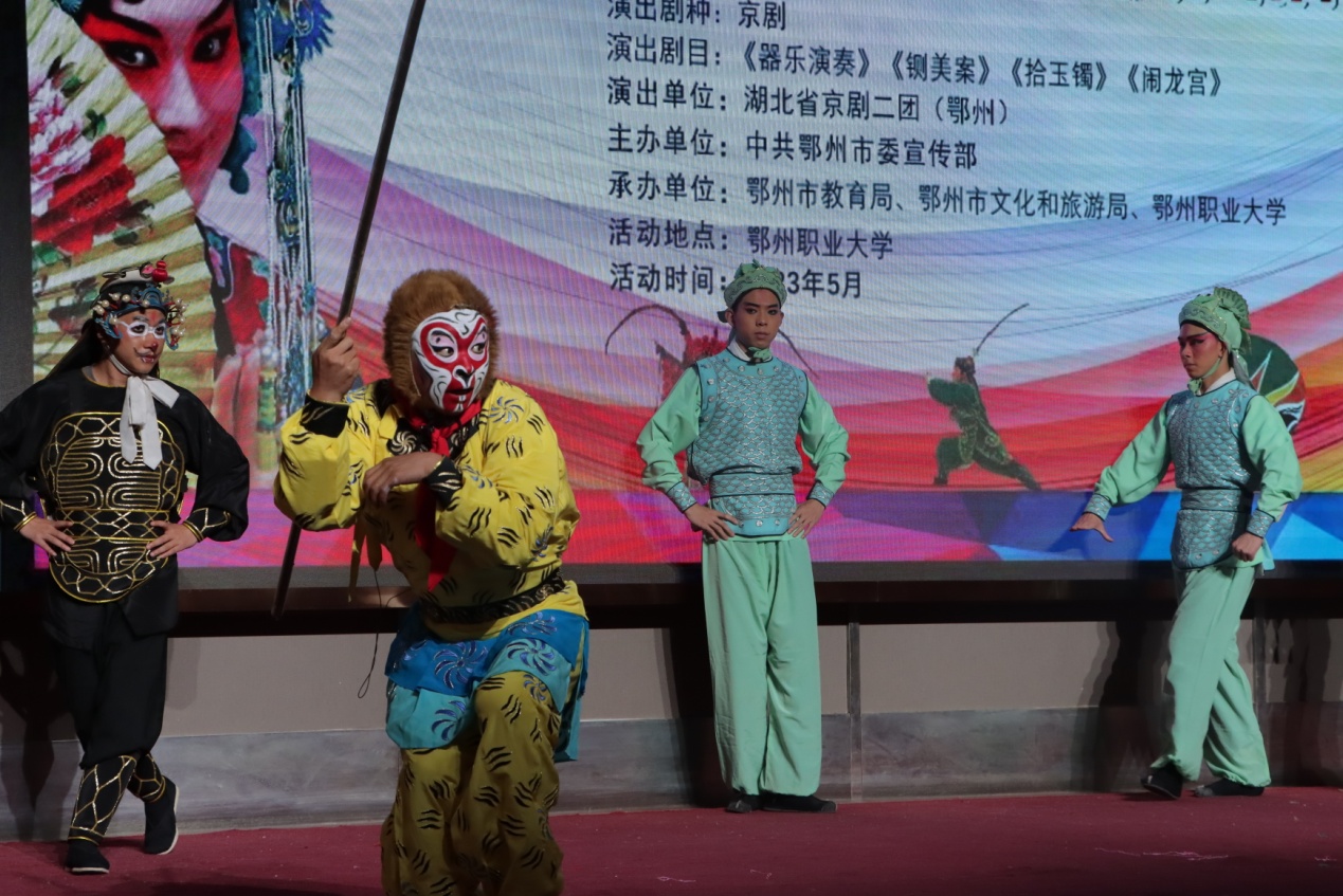 本网讯(学生记者 倪晶晶/文 王昱霞/摄)为弘扬中华优秀传统文化,让广大师生感受传统戏曲的魅力,5月11日下午,由市委宣传部主办、市教育局、鄂州文化和旅游局和我校承办的2023年鄂州市“戏曲进校园”活动在求真楼学术报告厅举行。来自湖北省京剧二团的演员们为师生带来一场精彩的戏曲文化盛宴。