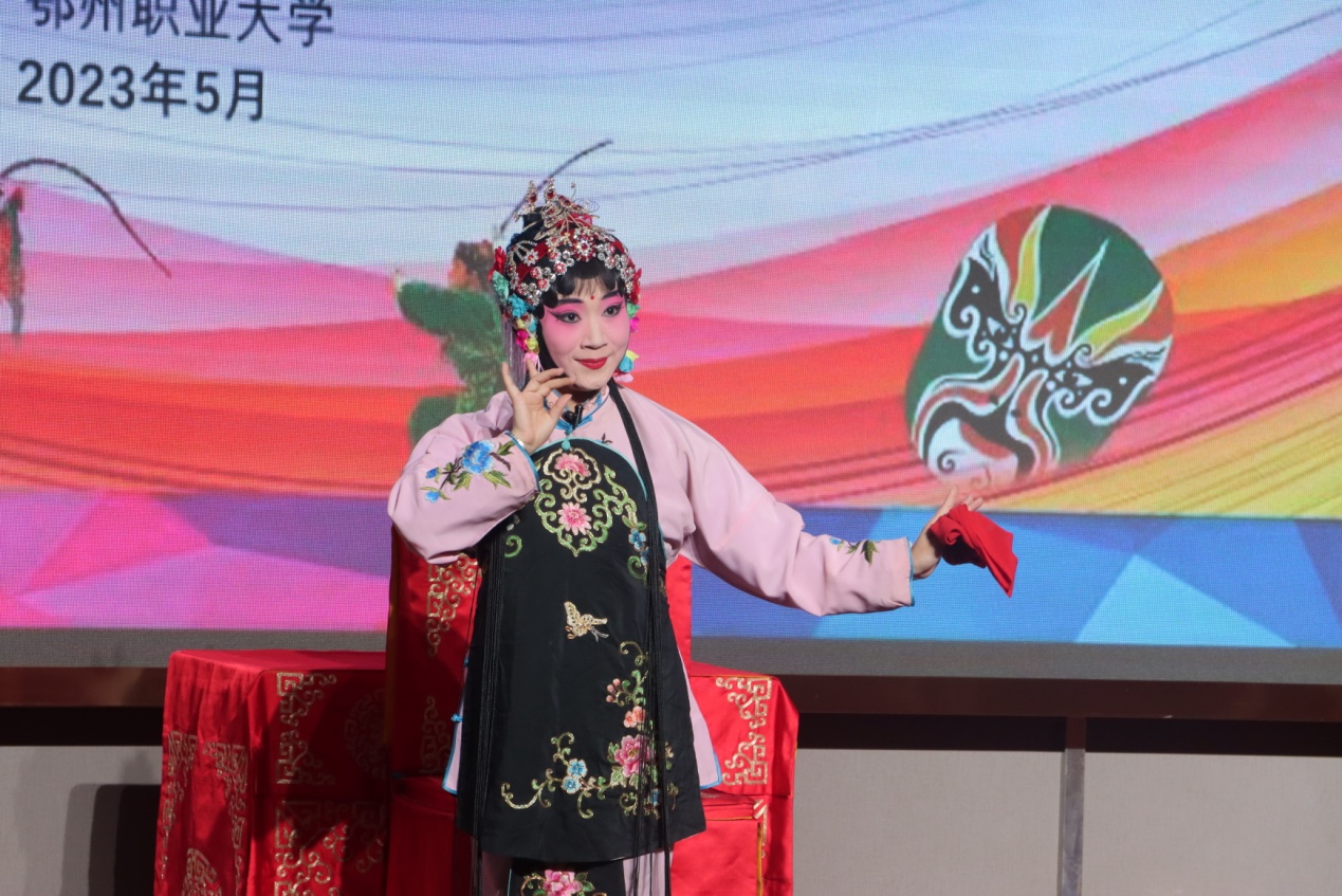 活动在欢快的器乐演奏中拉开序幕,经典剧目《铡美案》选段唱腔字正腔圆韵味十足。《拾玉镯》选段婉转悠扬、扮相俊美,挽青丝、双环结、百合鬓边巧装点;舞袖子、手绢过肩飞指尖,一个个精彩逼真的角色呈现在同学们眼前。《闹龙宫》中的 “美猴王”形神兼备尽显惊人技艺,将长枪、大刀、长鞭等舞得虎虎生风。精彩的表演深深吸引了学生们的目光,赢得了在场师生一阵阵热烈的喝彩声与掌声。