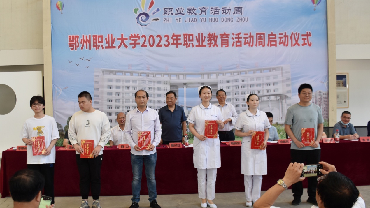 启动仪式上表彰了我校参加2022年湖北省职业学院技能大赛获奖的团体和个人。